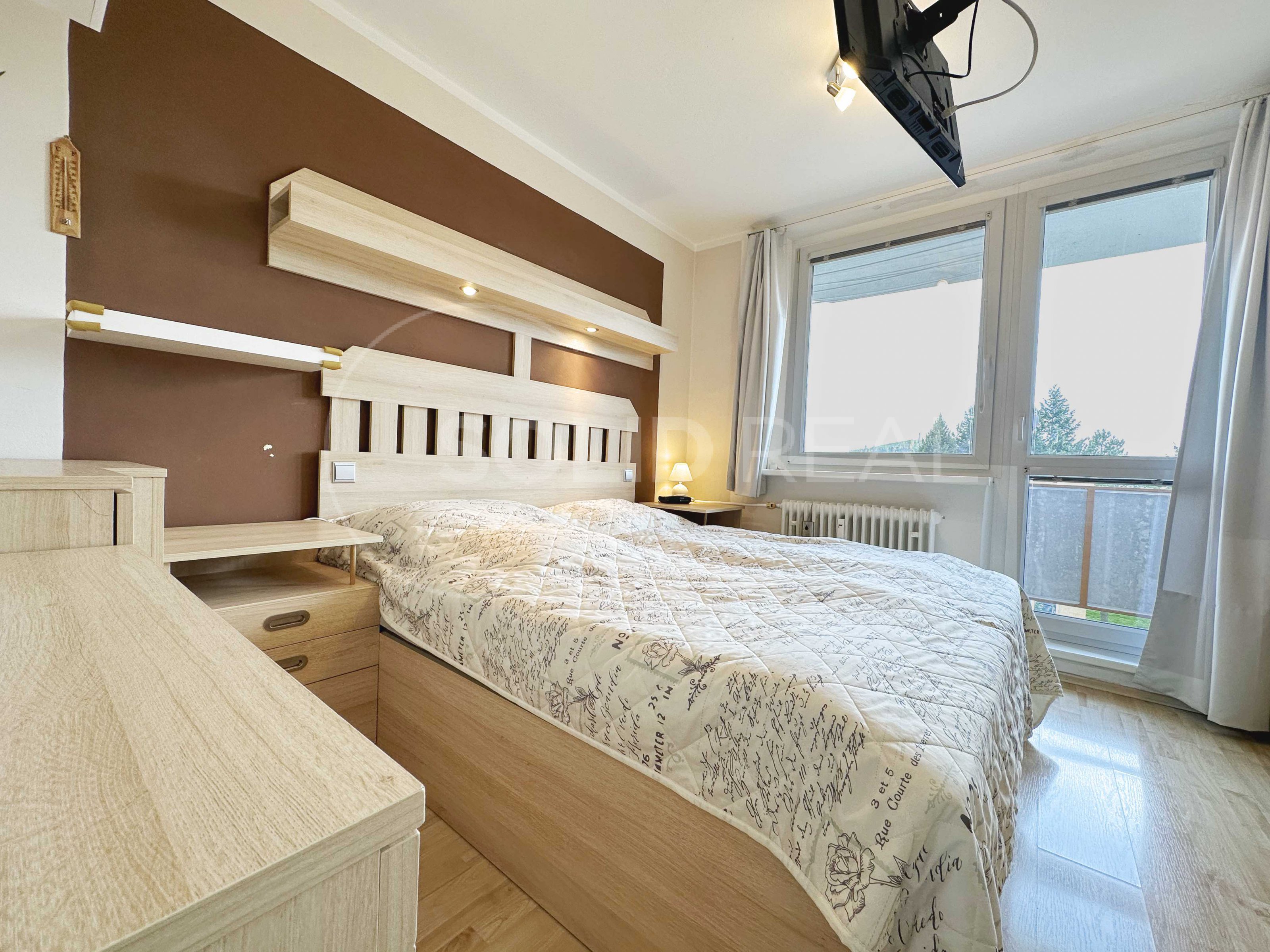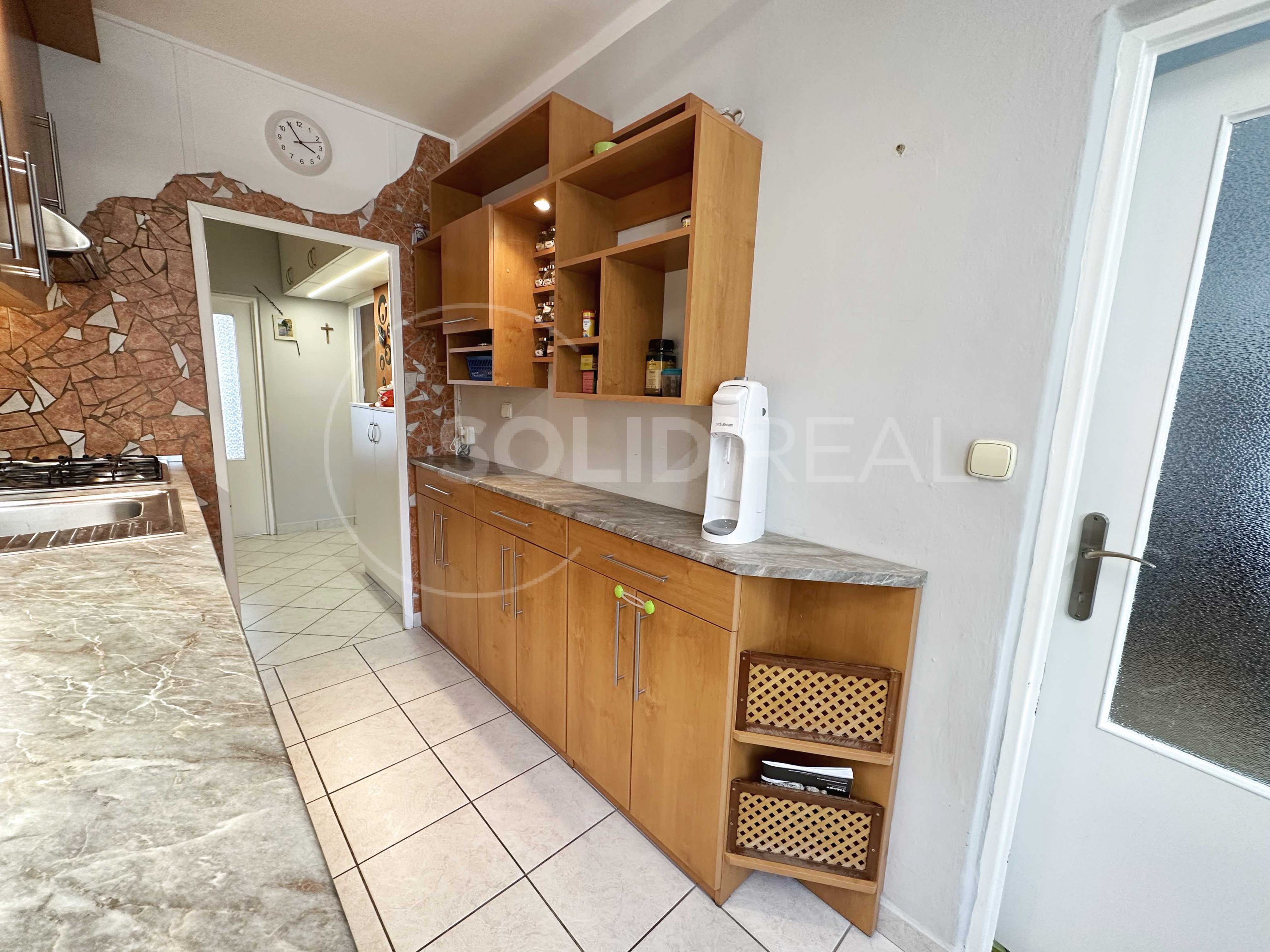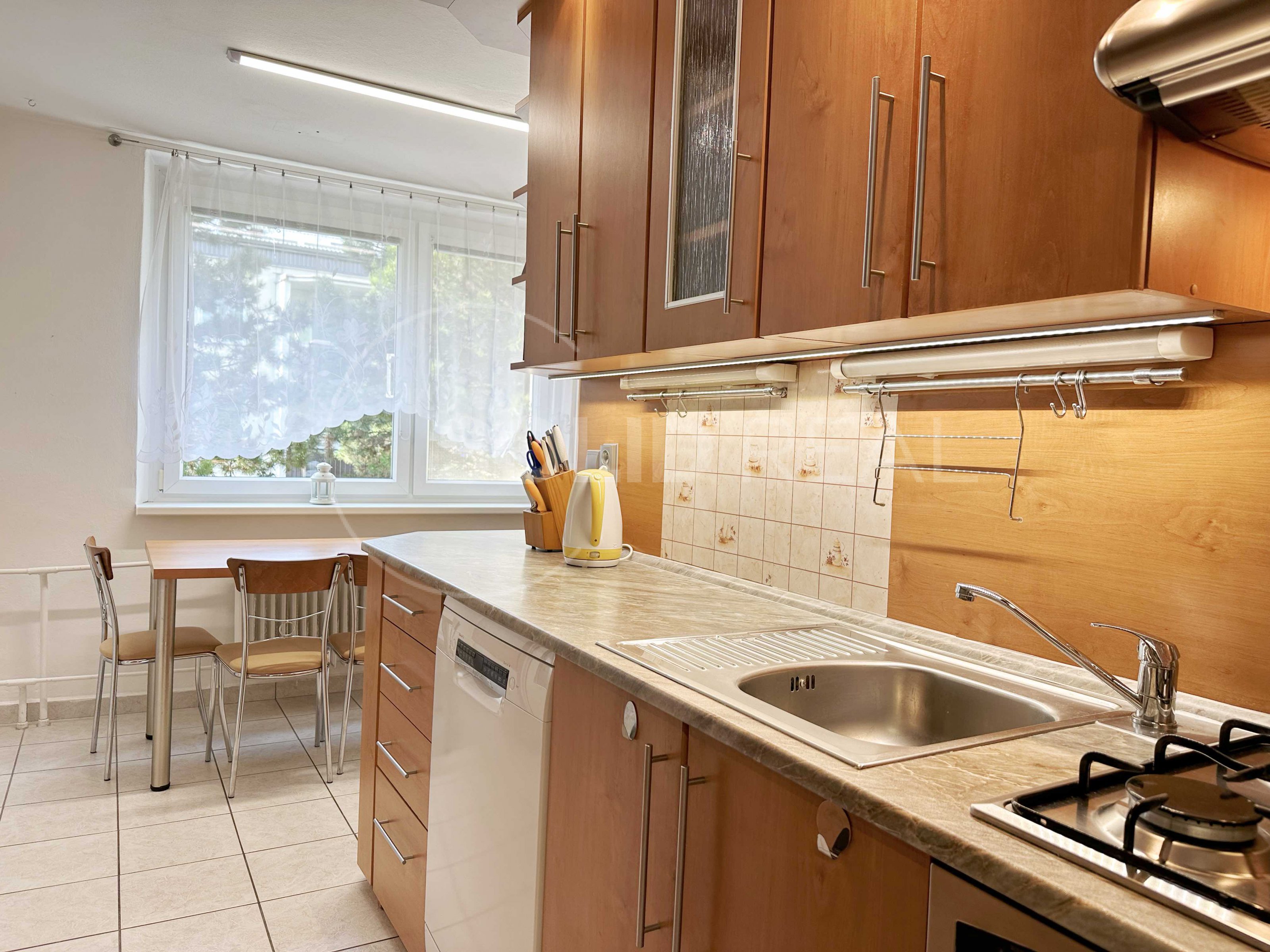 Nabízíme k prodeji prostorný byt o dispozici 3+1 v Tišnově na Dřínové, který se nachází v posledním podlaží (4/4p.) revitalizovaného panelového domu bez výtahu. V rámci revitalizace byla vyměněna okna za plastová, opraveny lodžie, zateplená fasáda s novou omítkou, opravena střecha a proběhla výměna stupaček. Výměra bytu činí 73 m² + pěkná lodžie. Pokoje mají samostatné vstupy. V bytě proběhla částečná rekonstrukce: podlahy v obytných pokojích jsou vyměněny za plovoucí, kuchyně, předsíň, koupelna a toaleta jsou osazeny keramickou dlažbou. V předsíni byly původní skříně nahrazeny velmi praktickou vestavbou. Jádro zůstalo sice umakartové, je však obložené a velmi pěkné. Výstup na lodžii, která je orientovaná na JV je z ložnice, stejným směrem je situovaný dětský pokoj, který je vybaven, podobně jako ložnice, postelemi a nábytkem na míru. Dalším vybavením, které zůstane v ceně bytu je například televize v ložnici, sedací souprava v obývacím pokoji a lednice v kuchyni. Obývací pokoj a kuchyně mají výhled do zeleně, směrem na SZ. Kuchyňská linka zůstane vybavena plynovou varnou deskou, el. troubou a digestoří. Je zde také připraven prostor pro připojení myčky nádobí. K bytu náleží v domě na patře samostatný zděný sklep a další prostory, které rádi ukážeme při prohlídce. Pokud hledáte bydlení v podstatě uprostřed přírody a přitom na dosah kompletně vybaveného města, jste zde na správné adrese: vzrostlé stromy, dětská hřiště, školka, škola kousek, za domem les a kopec Květnice - vítejte v Tišnově!