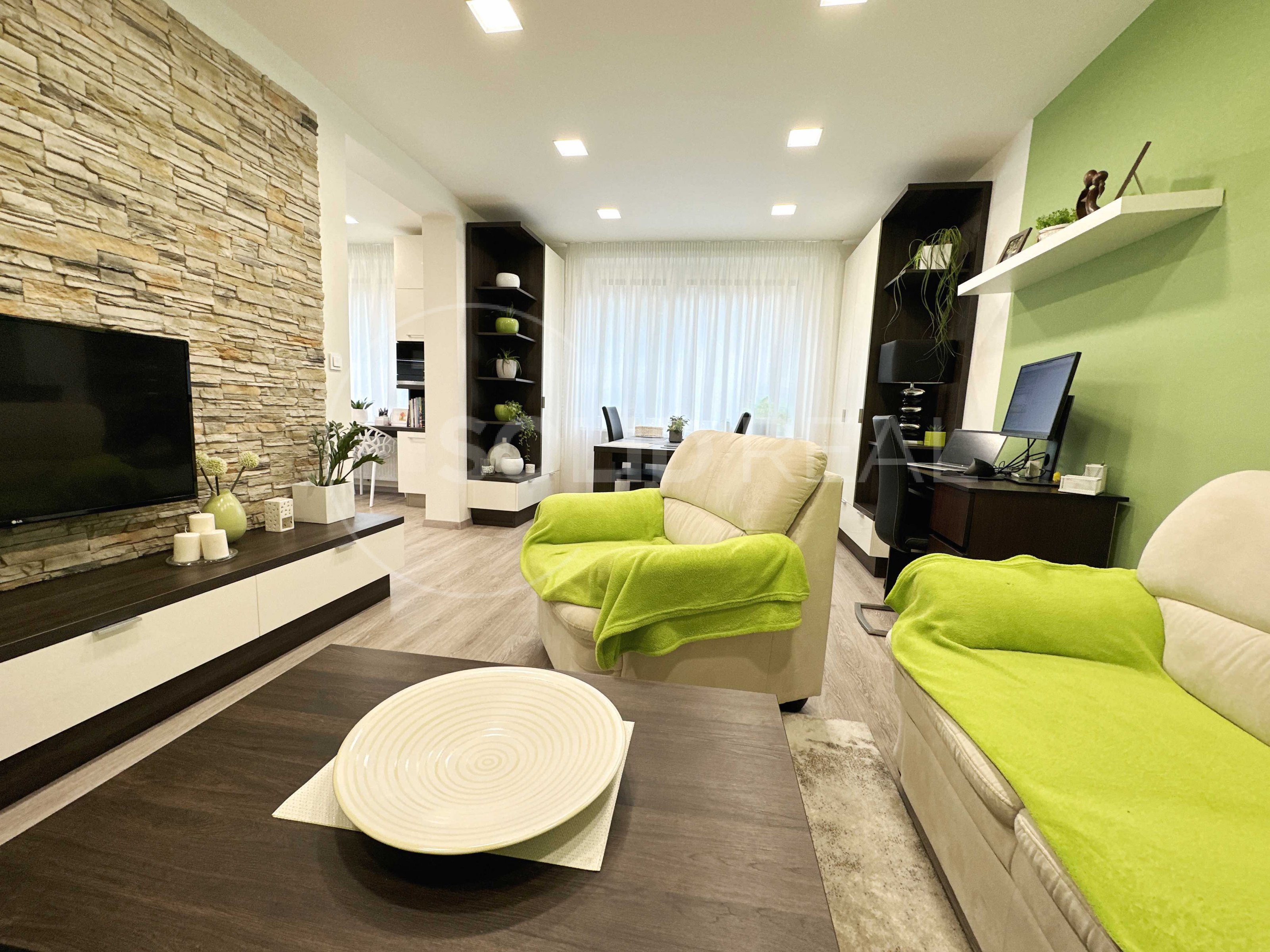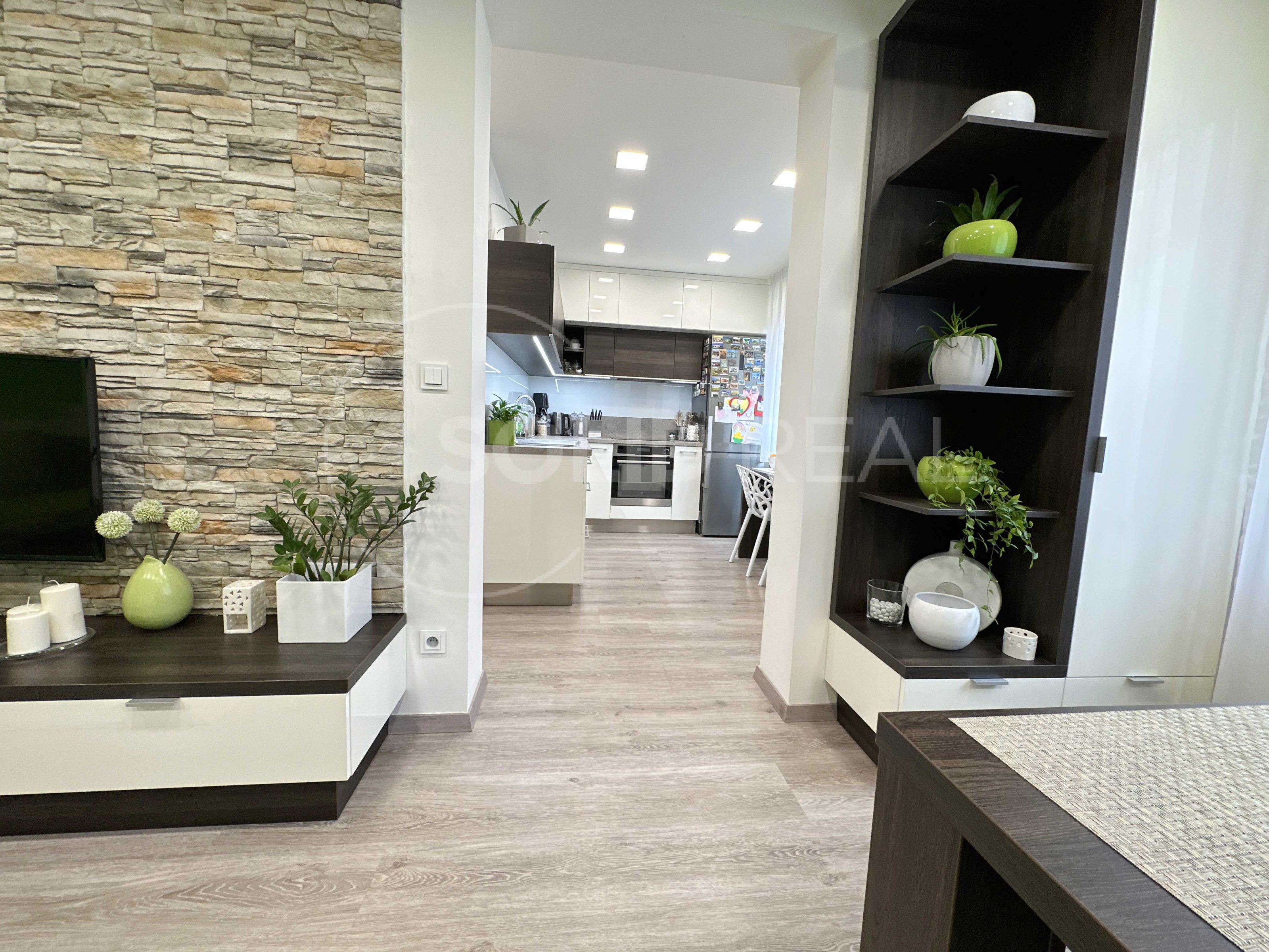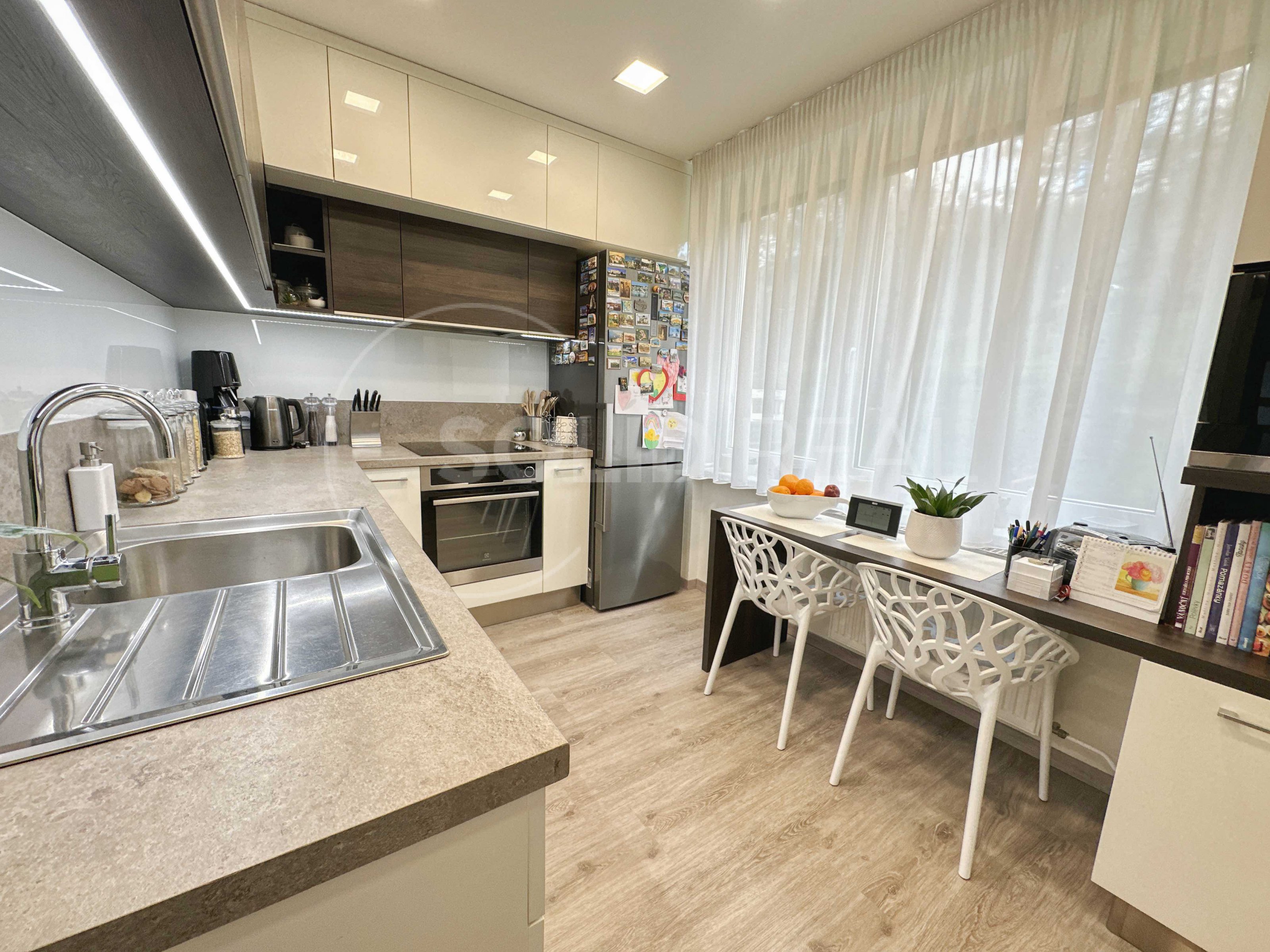 Nabízíme k prodeji byt, který se nachází ve 2.NP/ 4 p. panelového domu. Celková plocha bytu činí 76 m², rozměry jsou: 21 m² obývací pokoj, 16 m² dětský pokoj, 12 m² má ložnice, 11 m² kuchyň, lodžie 3 m². Byt prošel kompletní rekonstrukcí, kuchyňská linka byla zhotovena na míru, součástí jsou tyto spotřebiče: vestavěná mikrovlnná trouba zn. Siemens, elektrická trouba zn. Elektrolux, indukční varná deska AEG, digestoř zn. Elektrolux, lednička. V jednotce byla zbudována nová koupelna včetně nábytku, WC odděleně. V bytě jsou dále nové dveře, obložkové zárubně, podlaha vinylová. Součástí kupní ceny je veškerý vestavěný nábytek, dále elektrospotřebiče vč. pračky a sušičky. Kuchyň s obývacím pokojem jsou orientovány na východ, ložnice a dětský pokoj na západ. Volné od 1.9.2023. Město Tišnov nabízí kompletní síť obchodů a služeb, jsou zde různá dětská hřiště i sportoviště a dále se zde pořádají i různé kulturní a společenské akce.