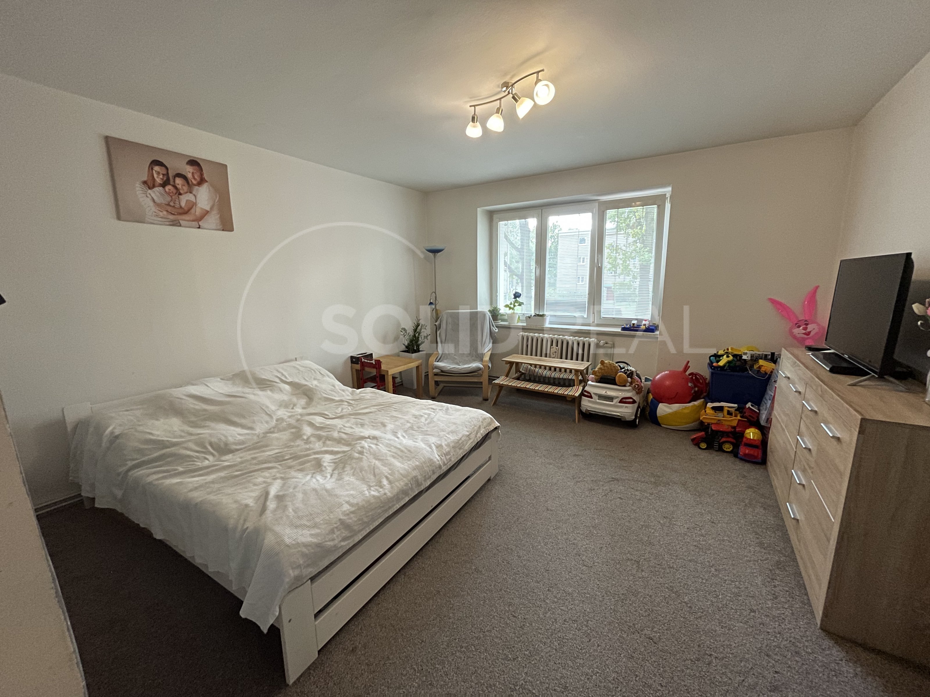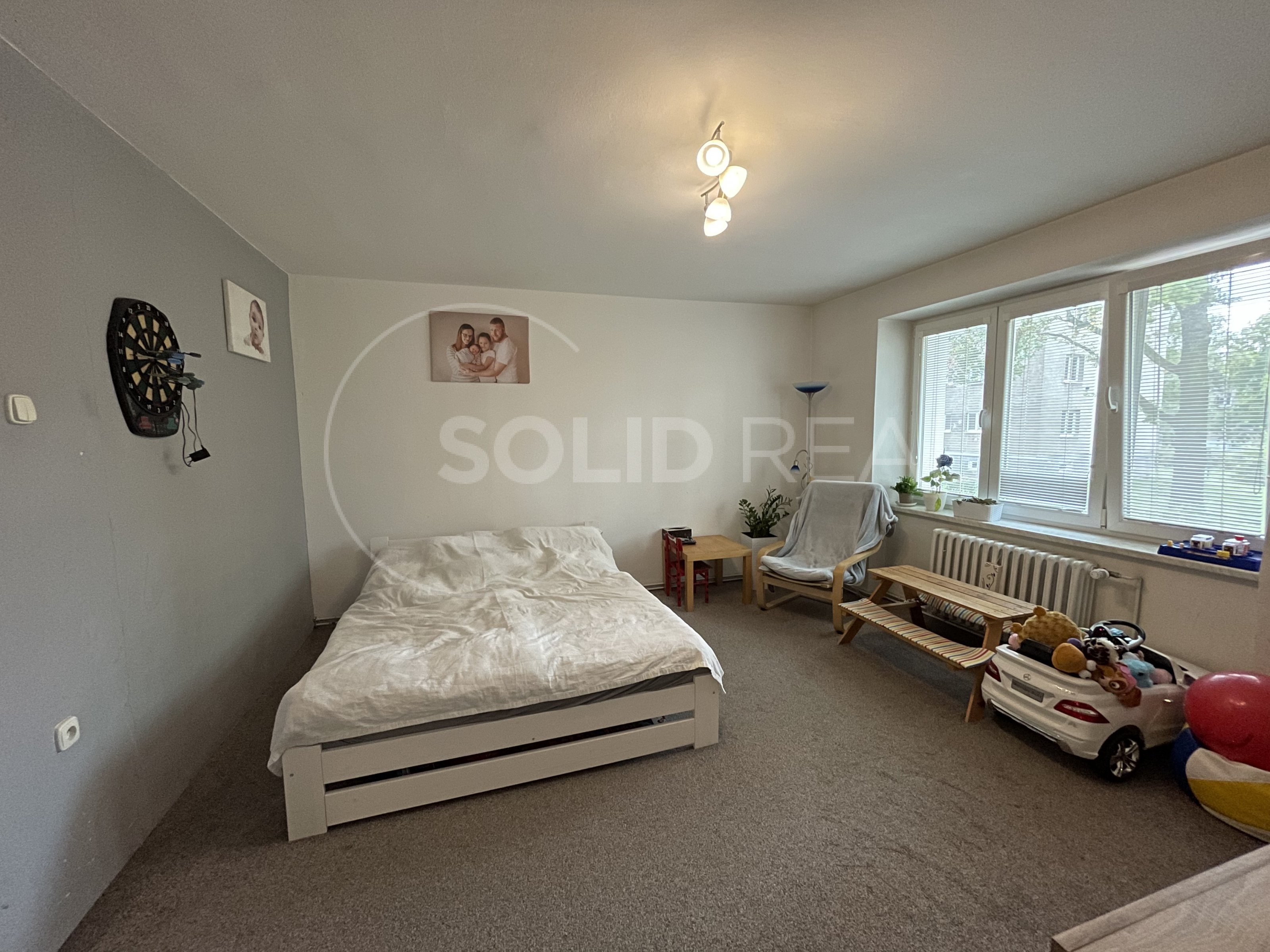Nabízíme k prodeji velmi prostorný byt v osobním vlastnictví typu 2+1, který se nachází v 1.NP/3 cihlového domu, přičemž jednotka je umístěna poměrně vysoko nad zemí. Její celková výměra činí 56 m² + 3 m² je velikost sklepu. Byt jako takový je veden jako 2+1, ale přemístěním kuchyně vznikla další místnost, která je nyní využívána jako velká šatna, lze ji však využít i jako další obytný prostor (např. pracovnu, malý pokoj). Byt má zděné jádro, koupelnu s vanou, WC samostatně. V obytných místnostech jsou na podlaze parkety, v koupelně a na toaletě položena dlažba, ostatní podlahové plochy jsou pokryty betonovým potěrem. Velkou předností je vlastní vytápění a ohřev TUV, které bylo instalováno v letošním roce. Bytový dům má sedlovou střechu a prošel zdařilou revitalizací. Byla zhotovena nová fasáda se zateplením, okna vyměněna za plastová, stupačky také již v plastu, došlo i k zateplení sklepů, k dispozici je i kočárkárna. Díky kvalitnímu zateplení a vlastnímu vytápění jsou s provozem jednotky spojeny nízké měsíční náklady, které činí 2.300,-Kč + elektřina a plyn. V okolí domu se nachází škola, školka a dětská hřiště, příjemnou atmosféru dodají vzrostlé stromy a obdobné bytové domy. Svým umístěním a dostupnou infrastrukturou je nemovitost vhodná především pro rodiny s dětmi. Volné dohodou.