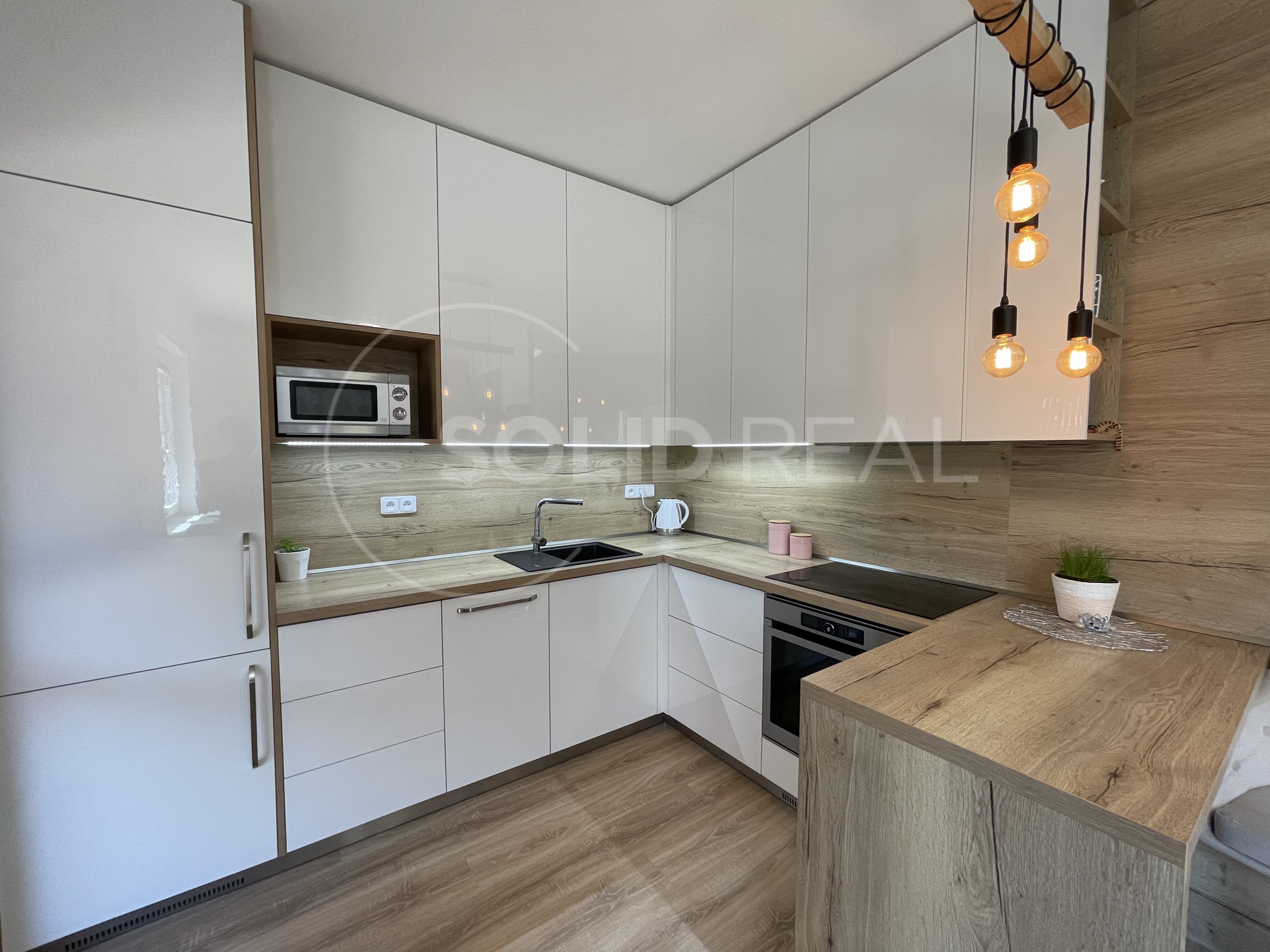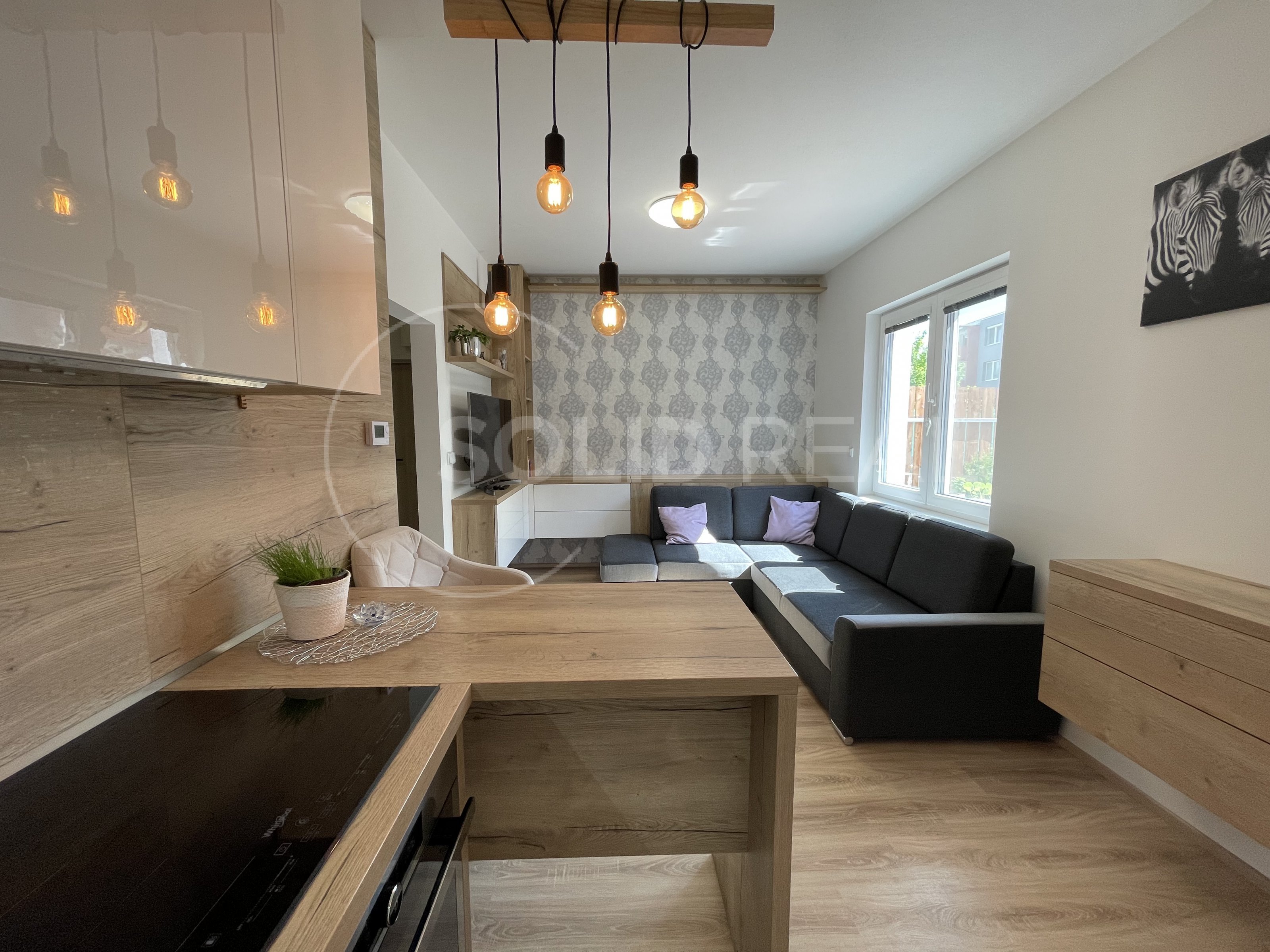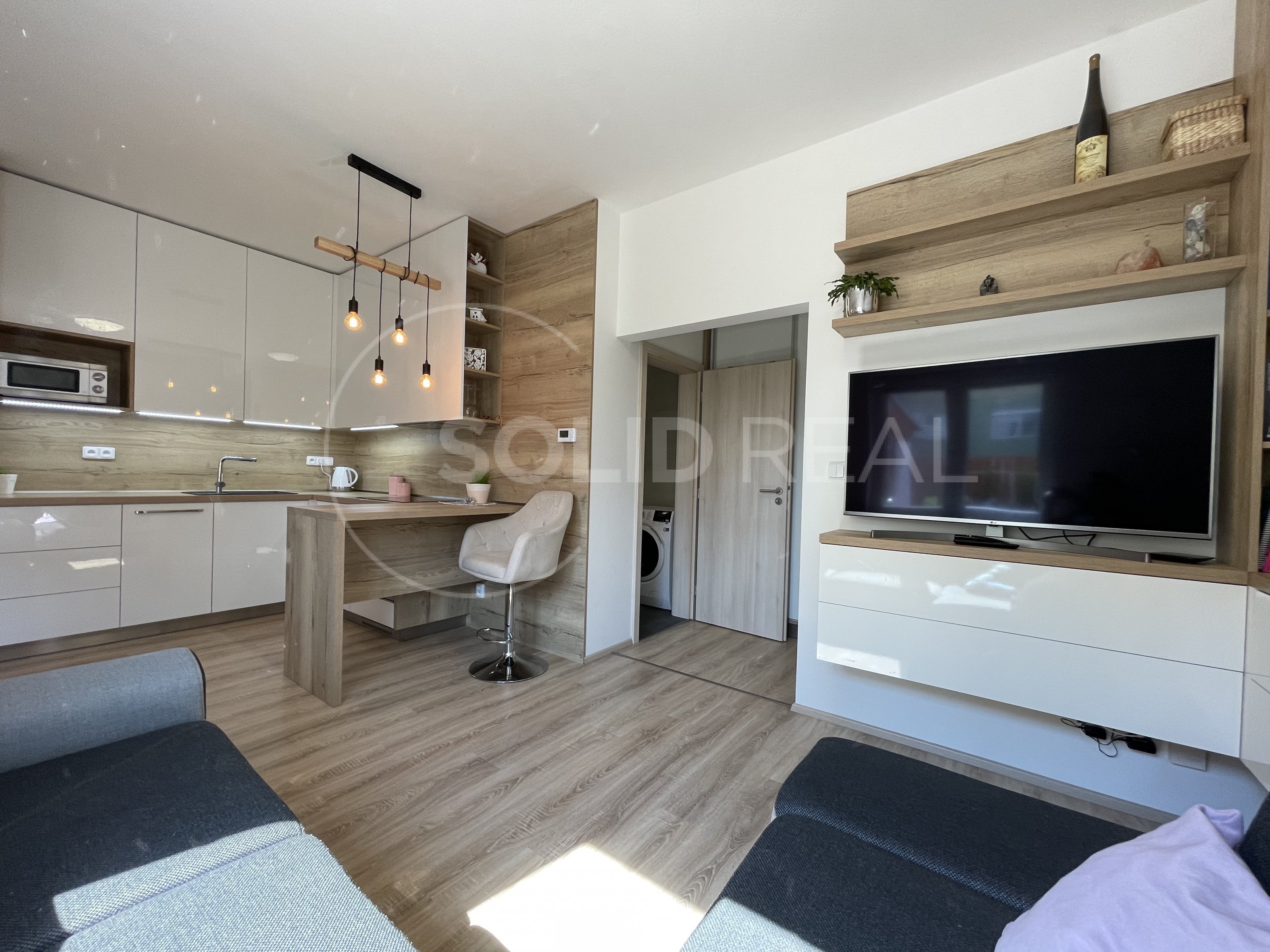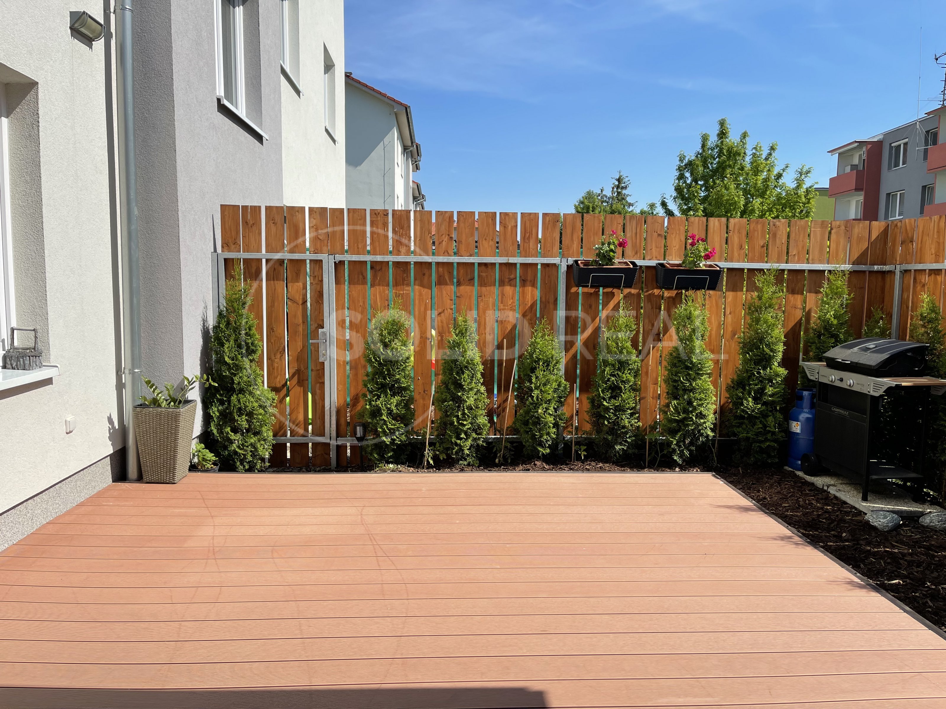Nabízíme k prodeji nadstandardně vybavený byt v osobním vlastnictví typu 1+kk s velkou terasou, který se nachází v 1.NP/4 novostavby zděného domu bez výtahu. Byt je umístěn v bytovém domě z roku 2019. Dům splňuje požadavky energetické náročnosti třídy "B”- velmi úsporný. Dům je vybaven vlastní plynovou kotelnou, zateplenou fasádou, plastovými okny s izolační trojsklem a dalším. Byt samotný je bezbariérový, umístěný v přízemí bytového domu, ve kterém je i vlastní zděný sklep. Vstup na velkou terasu je možný přímo z bytu, ale i z přilehlého pozemku- terasa je oplocená, s vlastní brankou. Velikost terasy činí 26m², z toho velká část je osazena dřevoplastovou bezúdržbovou podlahou. Část této podlahy je zastřešena pergolou proti dešti a sněhu. Terasa je dále vybavena osvětlením, elektrickými zásuvkami a rozvodem elektřiny i do záhonu. Zbytek terasy představuje zelený pás osázený tújemi. Byt je vybaven zařízením a nábytkem na míru, v kuch. lince jsou instalovány spotřebiče (lednice s mrazákem, myčka nádobí, digestoř, indukční vraná deska, el. trouba, mikrovlnka). Jídelní stůl je řešen jako součást kuchyňské linky. V obývací části designová sedačka, televize a nábytek na míru, na chodbě prostorná vestavěná šatní skříň. Koupelna je osazena závěsnou toaletou a rohovou vanou, dále koupelnovým nábytkem na míru. Podlahy jsou plovoucí laminátové, v koupelně velkoformátová dlažba. Okna jsou vybavena žaluziemi a sítěmi proti hmyzu. Celý byt je napojen na podlahové teplovodní vytápění, které v koupelně doplňuje topný žebřík. Velikost bytu činí 30m². Do bytu zaveden internet a televize optickým kabelem. Velmi nízké náklady na provoz ve výši 1.600,- Kč + internet a televize. Volný od 1.10. Byt je situován na východ, díky čemuž se v letních měsících nepřehřívá, zároveň je umístěn do velmi klidné části lokality a i díky prostorné terase umožňuje polovinu roku žít takříkajíc venku. Parkování před domem. Prohlídka po předchozí dohodě není problém.