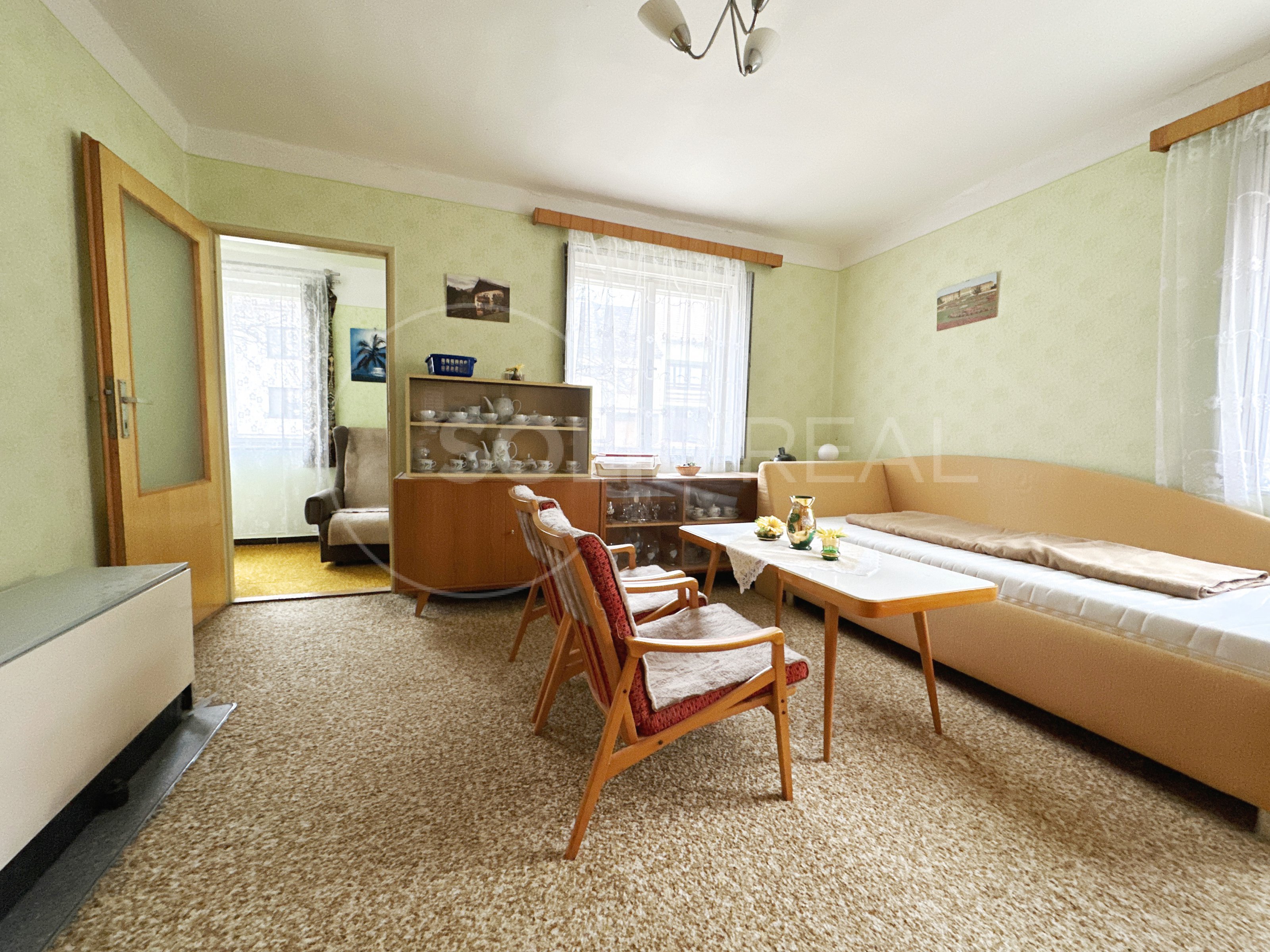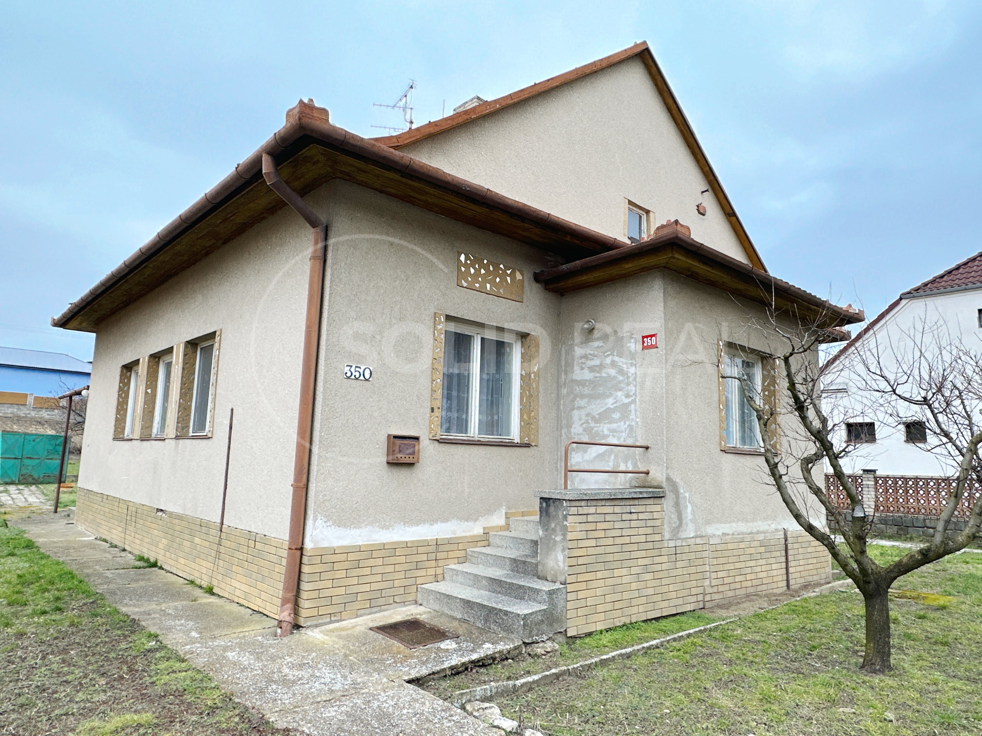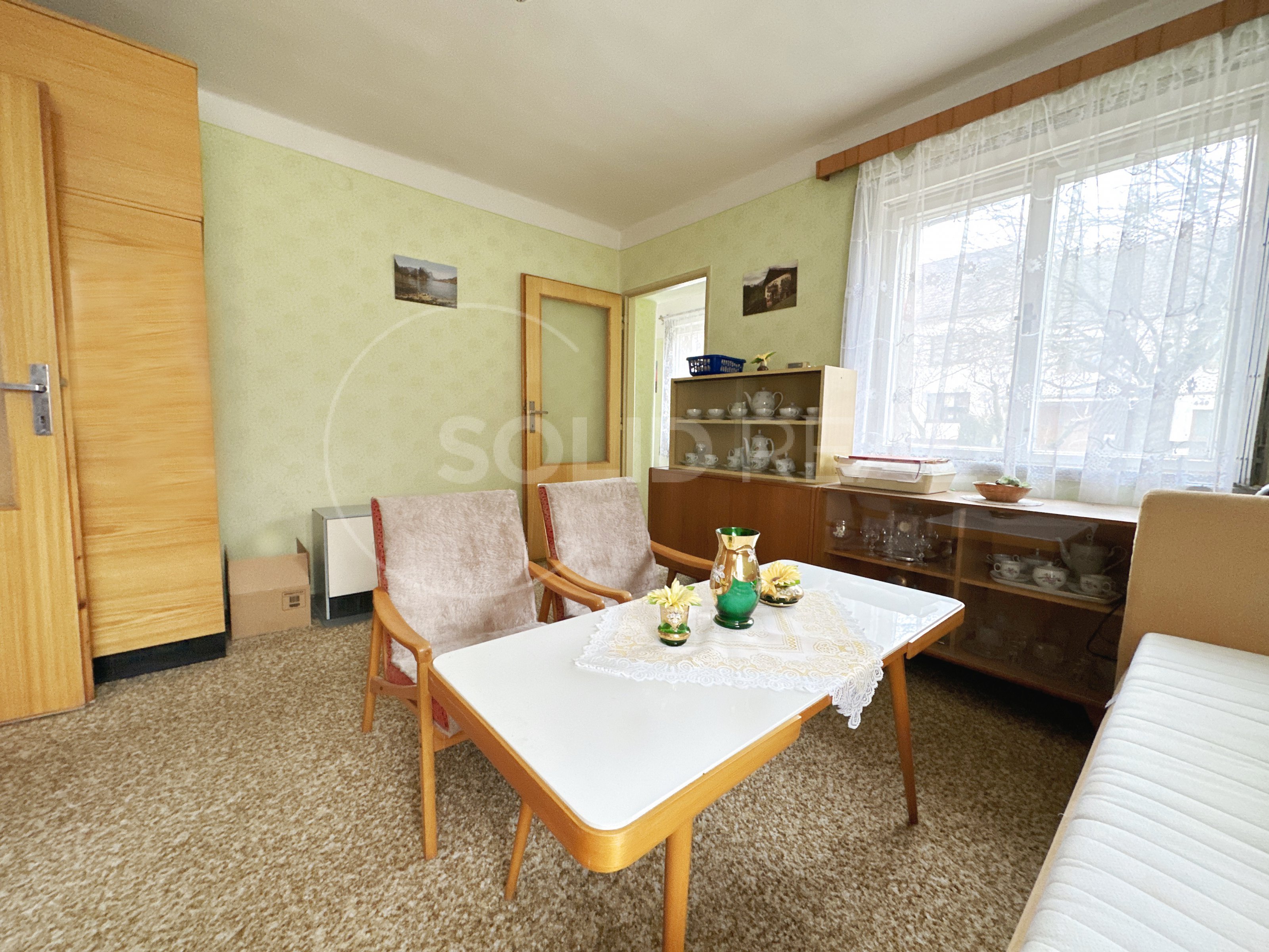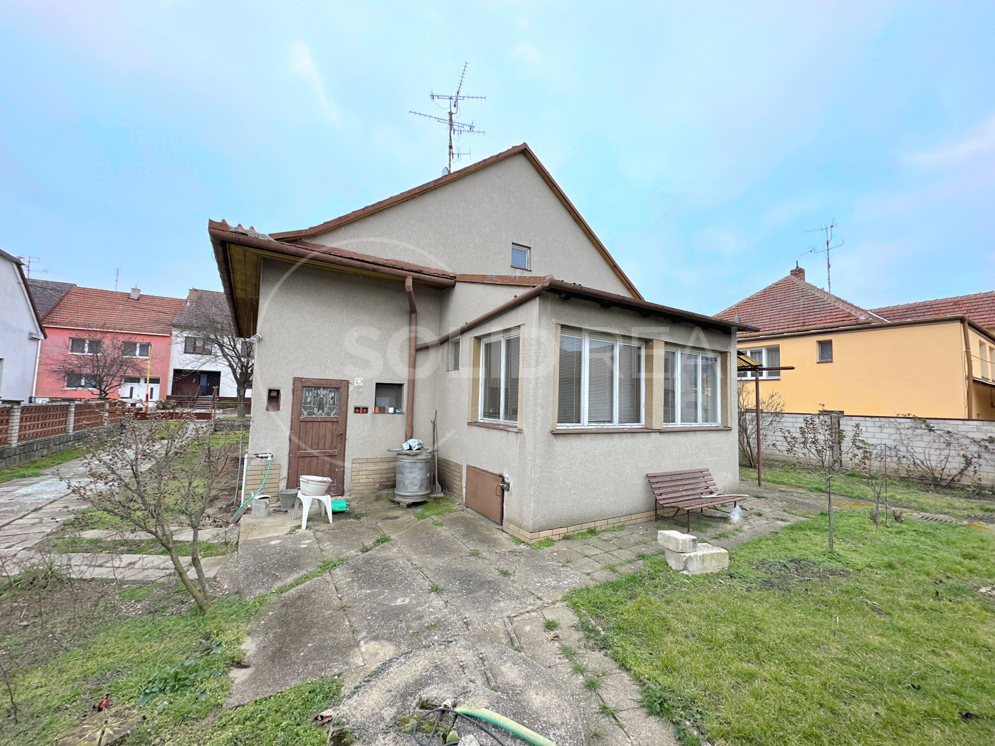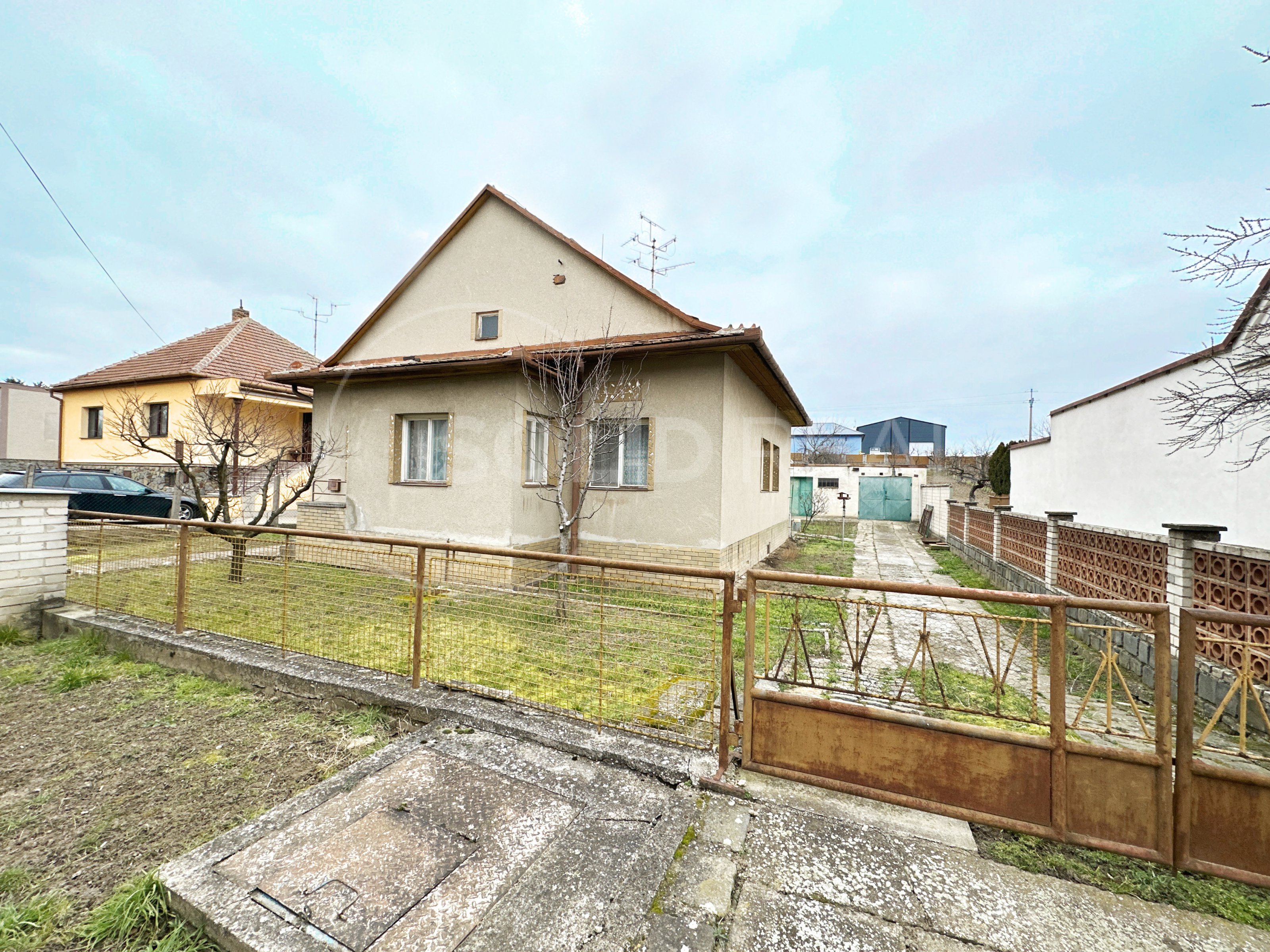 Ve výhradním zastoupení majitele nabízíme k prodeji samostatně stojící rodinný dům typu 3+1 s garáží, dílnou a dalším příslušenstvím. Dům je umístěn uprostřed vlastního pozemku se zpevněným nádvořím. Vjezd do garáže je situován podél domu a snese i větší vozidlo. Na dvůr s garáží a dílnou plynule navazuje velká zahrada, která je pravidelně obdělávaná- momentálně pooráno. Celková plocha pozemku činí 1.595 m², z toho zastavěná plocha a nádvoří 807 m². Zahrada je velikosti 788 m². Užitná plocha domu je 110 m² a díky prostorné půdě nad celým půdorysem domu je možné ji výrazně zvětšit půdní vestavbou. To umožňuje i schodiště na půdu, které je vhodně umístěno mimo obytné místnosti a nezabírá zbytečně prostor. Momentální dispozice je 3+1 s krytou verandou (zimní zahradou), koupelna je společná s toaletou, která je stavebně oddělená příčkou. Pod větší částí domu je k dispozici navíc sklep. Sklep i dům jsou suché, dům je izolovaný. Stavba pochází z let 1958-1960 a vyžaduje rekonstrukci a modernizaci. Díky starostlivému udržování je však možné dům obývat- vše funguje. Nemovitost je napojena na elektřinu 220/380 V s dvojím tarifem- vytápění zajišťují elektrická akumulační kamna, dále je zde jak obecní vodovod, tak vlastní studna s rozvodem pro užitkovou vodu, septik- kanalizace se buduje. K dispozici je komín pro případná krbová kamna. V případě zájmu je možné připojení plynu, který se nachází před domem. Okna v celém objektu jsou původní dřevěná, podlahy kombinace beton/PVC/dlažba. Nemovitost je umístěna v klidné části v podstatě na okraji obce a umožňuje nerušené bydlení s velkorysým pozemkem. Velmi vhodné pro rodinné bydlení, klidně spojené s podnikáním.