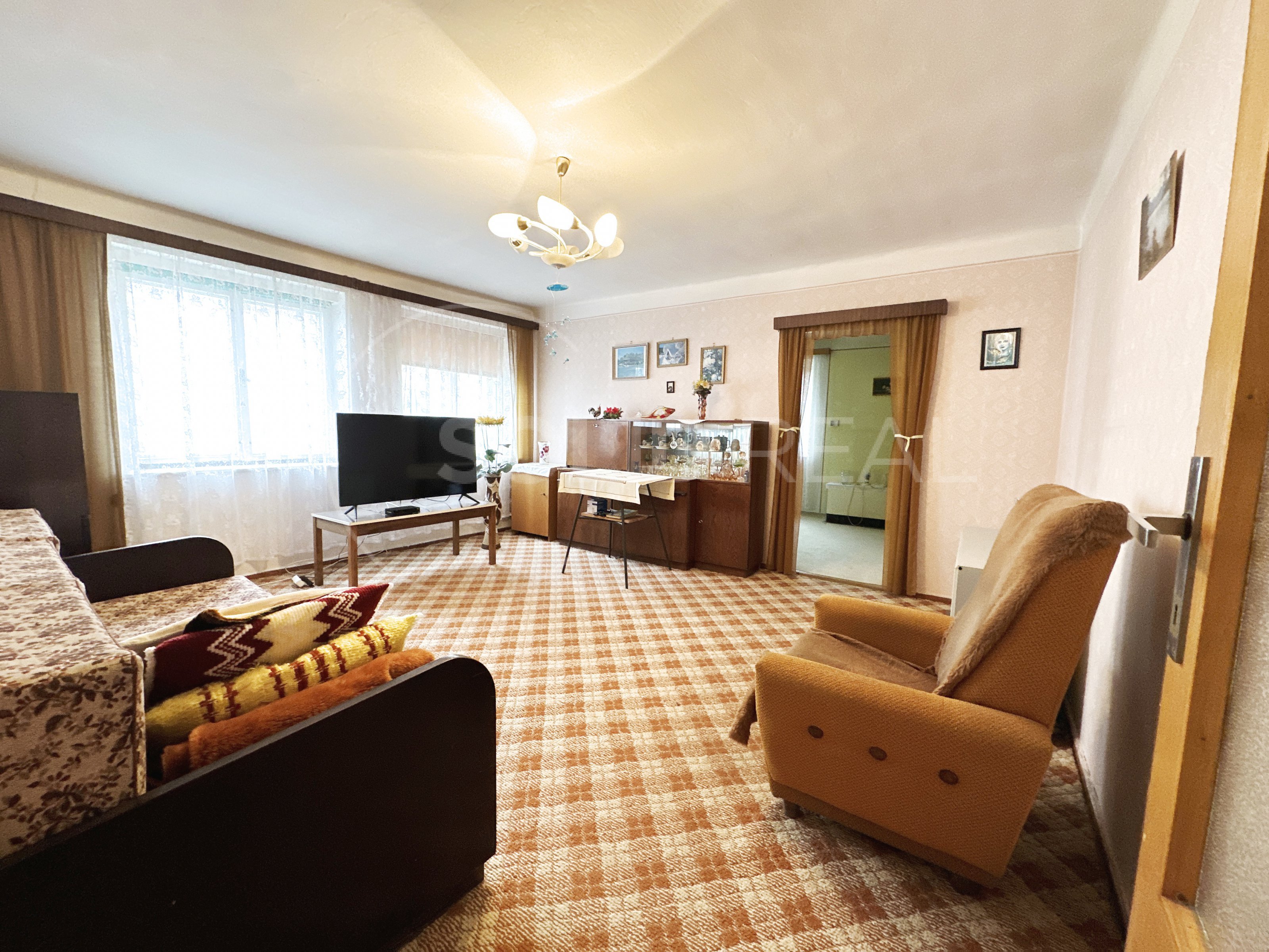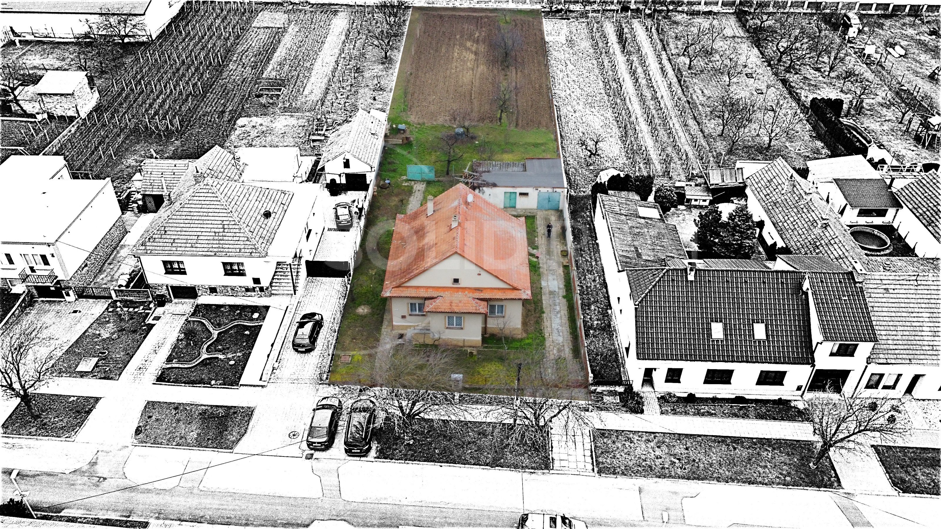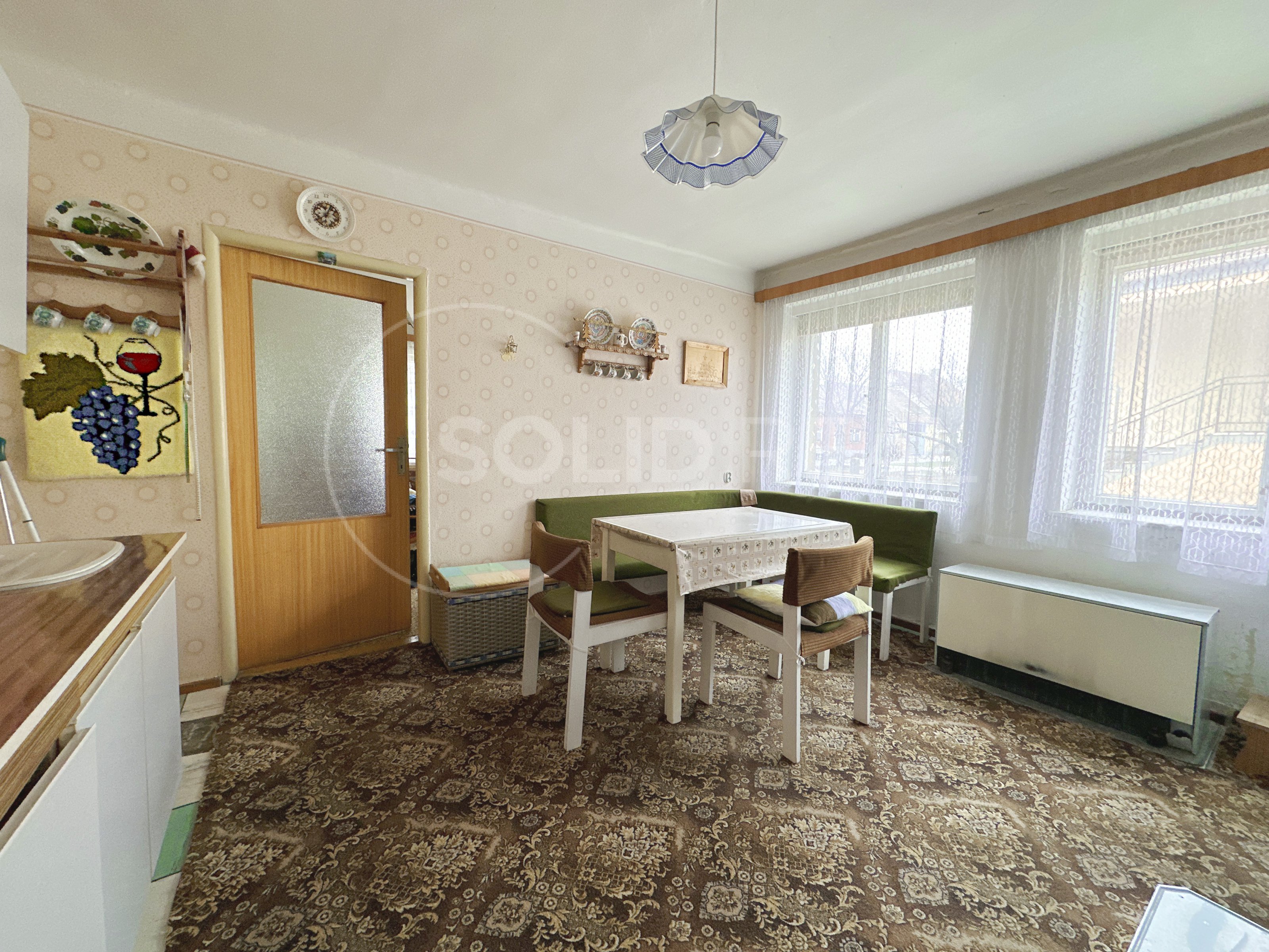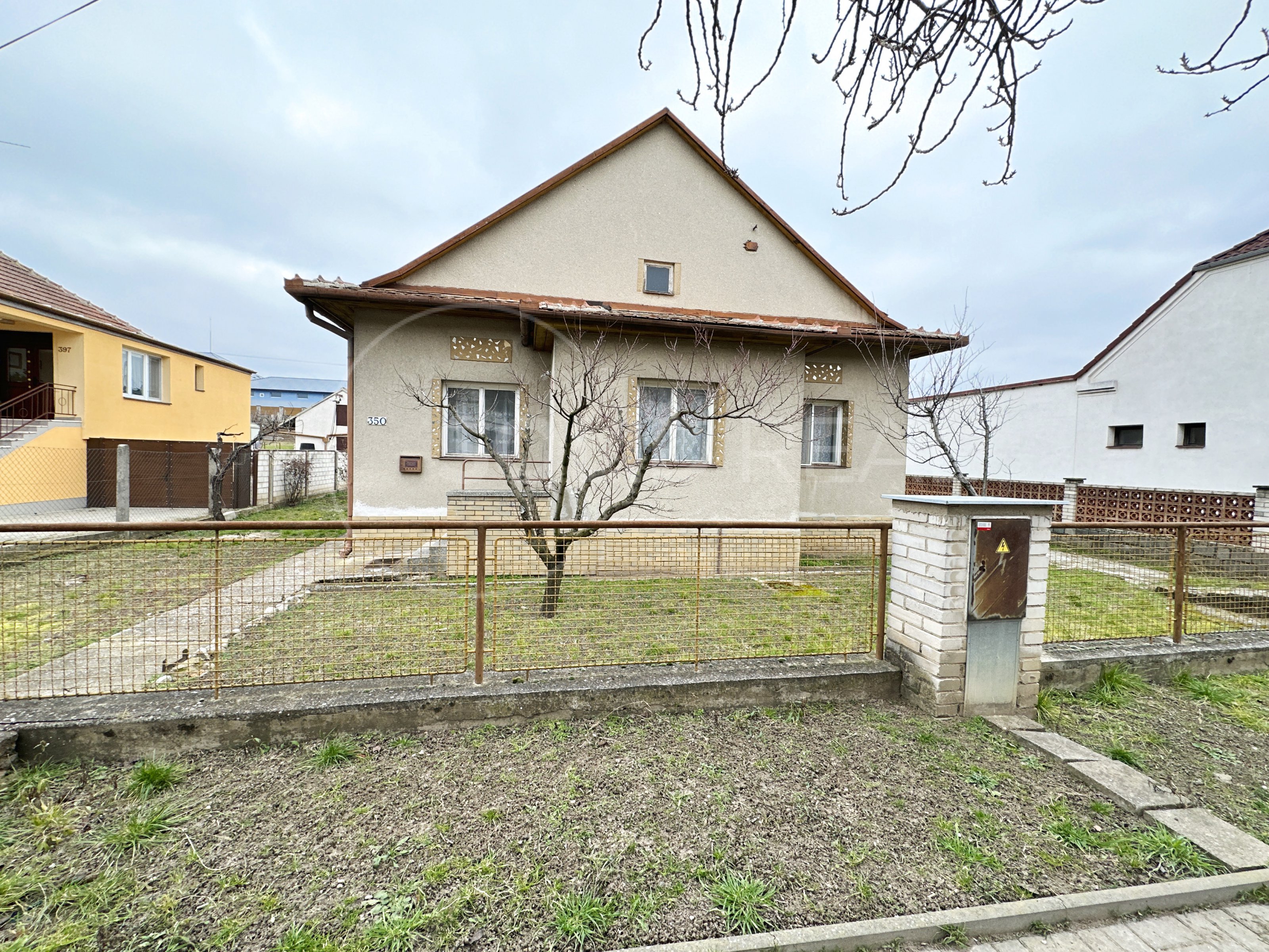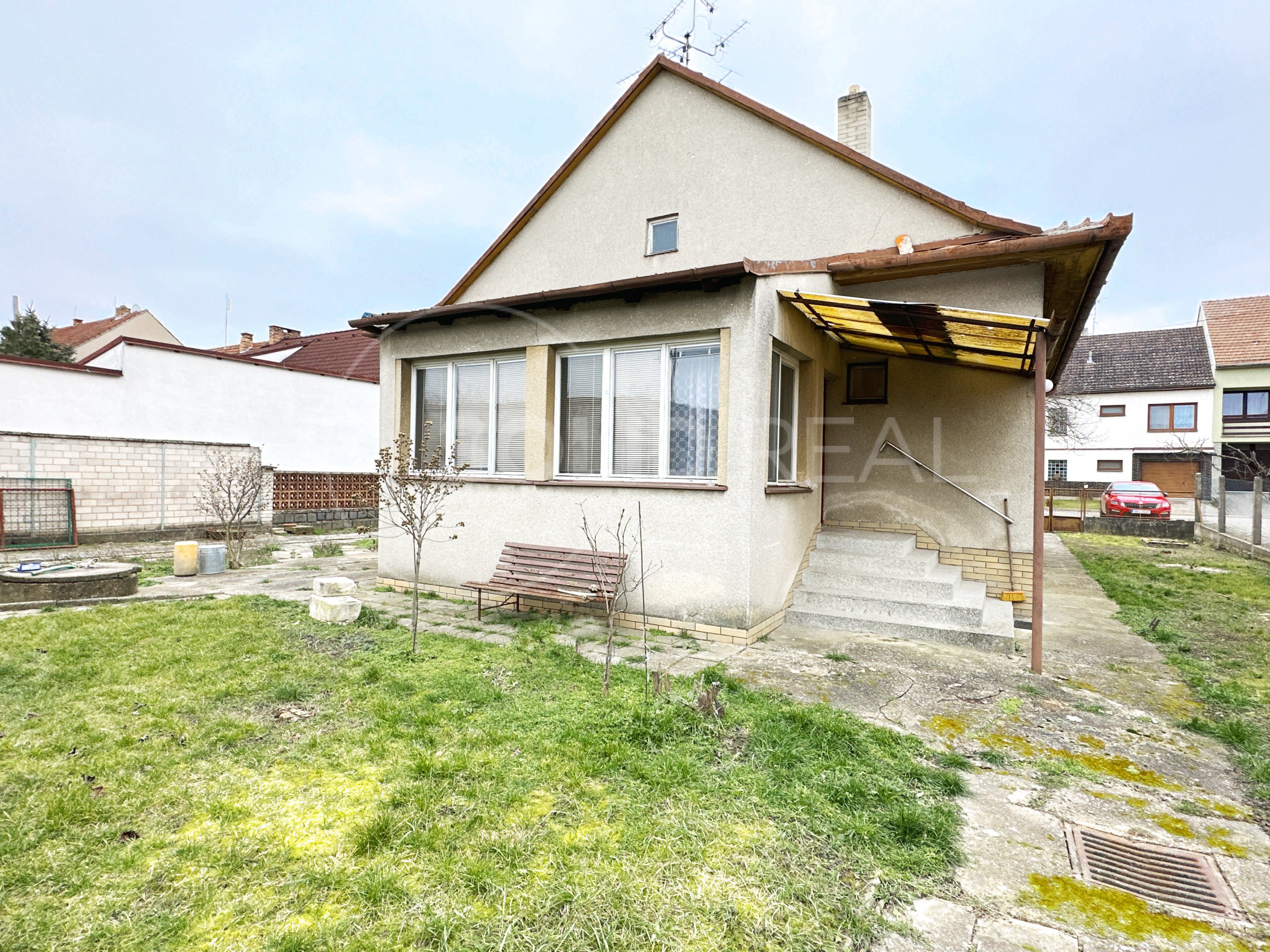 Ve výhradním zastoupení majitele nabízíme k prodeji samostatně stojící rodinný dům typu 3+1 s garáží, dílnou a dalším příslušenstvím. Dům je umístěn uprostřed vlastního pozemku se zpevněným nádvořím. Vjezd do garáže je situován podél domu a snese i větší vozidlo. Na dvůr s garáží a dílnou plynule navazuje velká zahrada, která je pravidelně obdělávaná- momentálně pooráno. Celková plocha pozemku činí 1.595 m², z toho zastavěná plocha a nádvoří 807 m². Zahrada je velikosti 788 m². Užitná plocha domu je 110 m² a díky prostorné půdě nad celým půdorysem domu je možné ji výrazně zvětšit půdní vestavbou. To umožňuje i schodiště na půdu, které je vhodně umístěno mimo obytné místnosti a nezabírá zbytečně prostor. Momentální dispozice je 3+1 s krytou verandou (zimní zahradou), koupelna je společná s toaletou, která je stavebně oddělená příčkou. Pod větší částí domu je k dispozici navíc sklep. Sklep i dům jsou suché, dům je izolovaný. Stavba pochází z let 1958-1960 a vyžaduje rekonstrukci a modernizaci. Díky starostlivému udržování je však možné dům obývat- vše funguje. Nemovitost je napojena na elektřinu 220/380 V s dvojím tarifem- vytápění zajišťují elektrická akumulační kamna, dále je zde jak obecní vodovod, tak vlastní studna s rozvodem pro užitkovou vodu, septik- kanalizace se buduje. K dispozici je komín pro případná krbová kamna. V případě zájmu je možné připojení plynu, který se nachází před domem. Okna v celém objektu jsou původní dřevěná, podlahy kombinace beton/PVC/dlažba. Nemovitost je umístěna v klidné části v podstatě na okraji obce a umožňuje nerušené bydlení s velkorysým pozemkem. Velmi vhodné pro rodinné bydlení, klidně spojené s podnikáním.