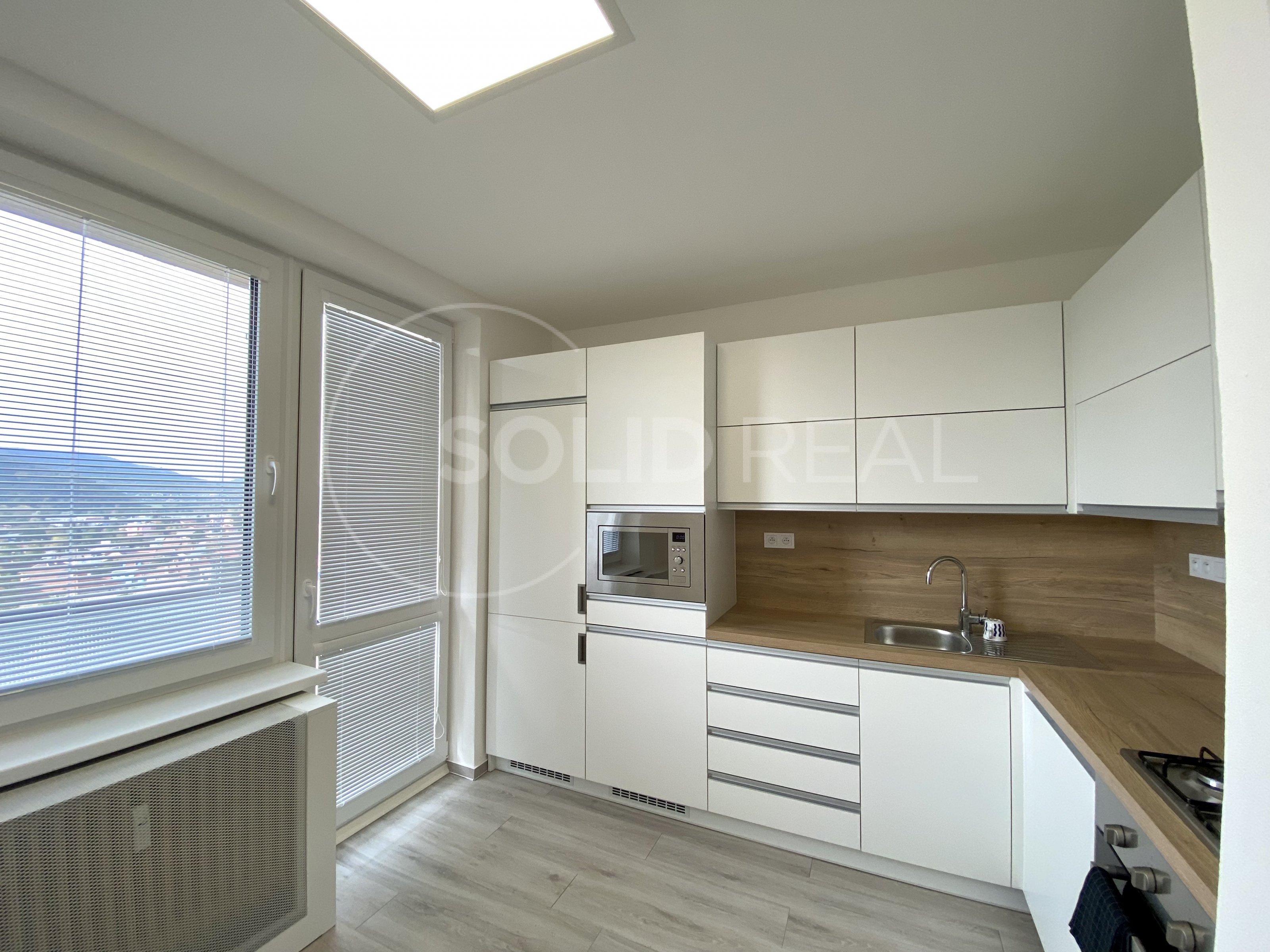Pronájem pro náročné- nabízíme k pronájmu krásný slunný byt typu 1+1 po kompletní rekonstrukci. Byt se nachází v 6.NP/9 panelového domu s výtahem. Dům má nové vchodové dveře, plastová okna, nový výtah, nové stupačky. Byt prošel kompletní rekonstrukcí: zděné jádro se sprchovým koutem a závěsnou toaletou, nové vinylové podlahy- v jádru v kombinaci s dlažbou, nová velká kuch. linka s vestavěnými spotřebiči (lednice, mrazák, mikrovlnka, el. trouba, plynová varná deska, digestoř), v kuch. lince příprava na pračku. V bytě nový domovní zvonek, rozvody televize ze společné antény na domě, nové obložkové dveře a zárubně. K dispozici 2x lodžie, plastová okna se žaluziemi. Možnost internetu- není součástí pronájmu. V pokoji nová postel. V domě k dispozici samostatný sklep a na patře domu uzamykatelná zděná komora. Z bytu je krásný výhled na Tišnov- J/Z. Volný po dohodě. Určeno pro max. 2 osoby bez zvířat, nekuřáci.