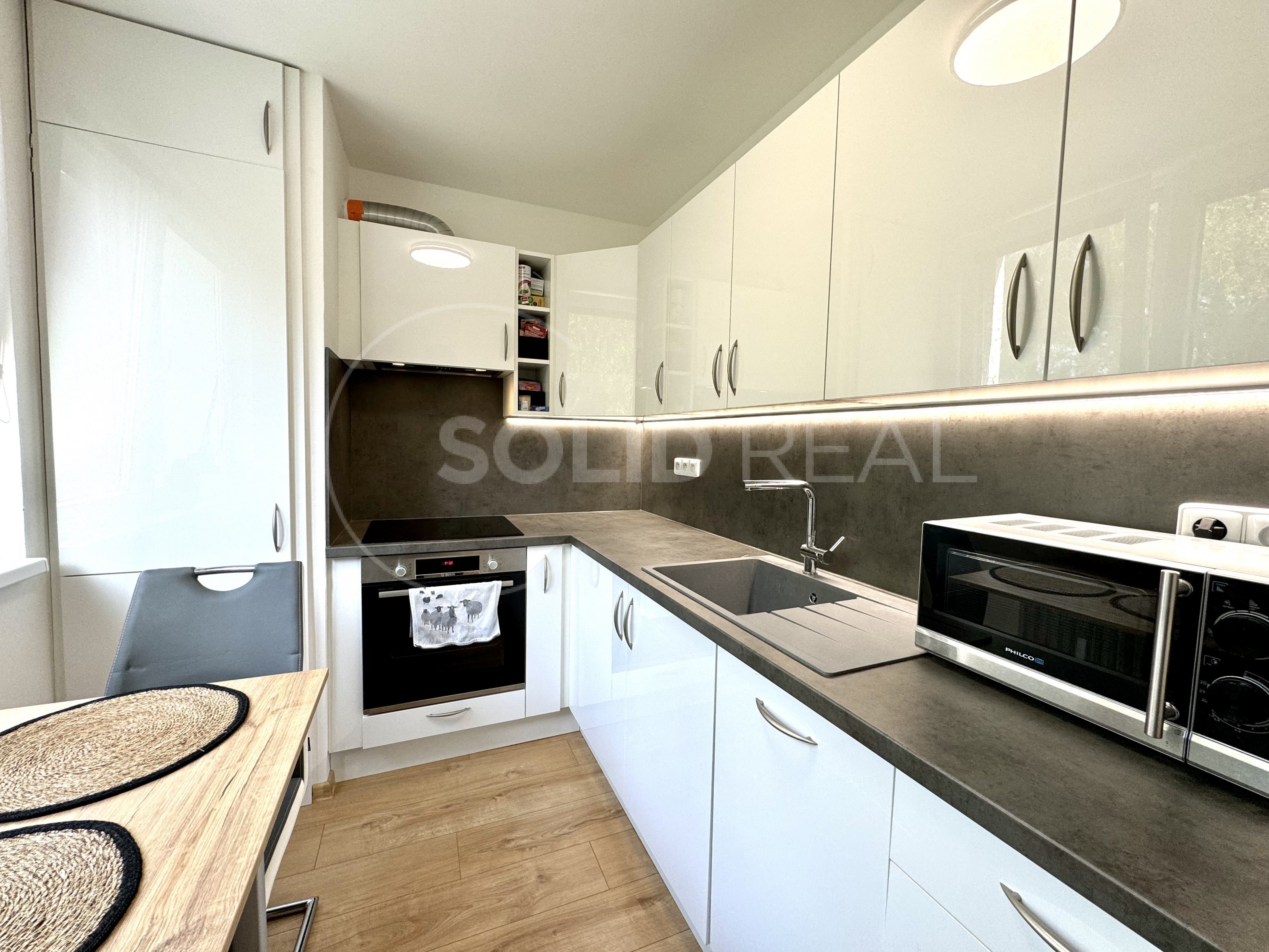 Nabízíme k pronájmu krásný světlý byt 2+1 s výhledem na město, který se nachází ve 3. patře/3 panelového domu, jež prošel nedávnou revitalizací. Byt o celkové ploše 52 m² prošel kompletní rekonstrukcí. Obývací pokoj má stejně jako ložnice samostatný vstup z chodby a laminátovou podlahu, která se snadno udržuje. V bytě jsou nová plastová okna se žaluziemi. Jádro bytu tvoří SDK, kde najdete samostatnou koupelnu s vanou a samostatné WC, které je navíc závěsné. Kuchyně- nová kuchyňská linka je vybavena nejnovějšími spotřebiči: digestoří, elektrickou troubou, indukční varnou deskou, mikrovlnkou, myčkou a volně stojící lednicí s mražákem. A abyste nemuseli řešit kde sušit prádlo, je byt vybaven pračkou a sušičkou, které jsou umístěny na toaletě. Toto vše je součástí pronájmu, stejně tak i většina nábytku, který vidíte na fotografiích- rádi upřesníme. Na lodžii s výhledem na okolí si užijete klidný večer. V bytě je zaveden internet a kabelová televize. V domě k dispozici sklep. Prohlídka je možná po předchozí telefonické domluvě. Volné od 1.10.2025.
