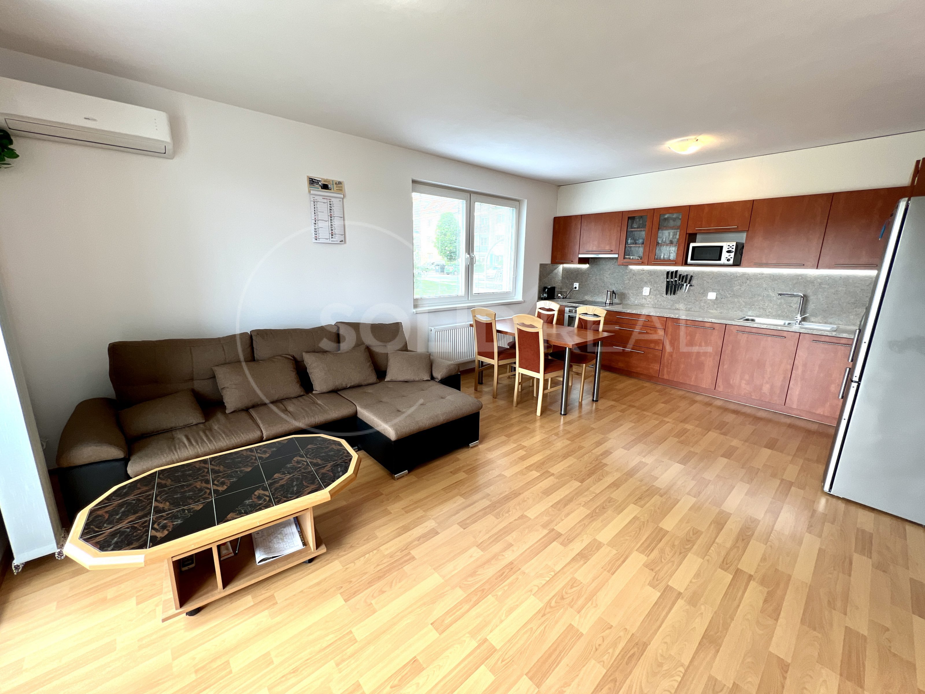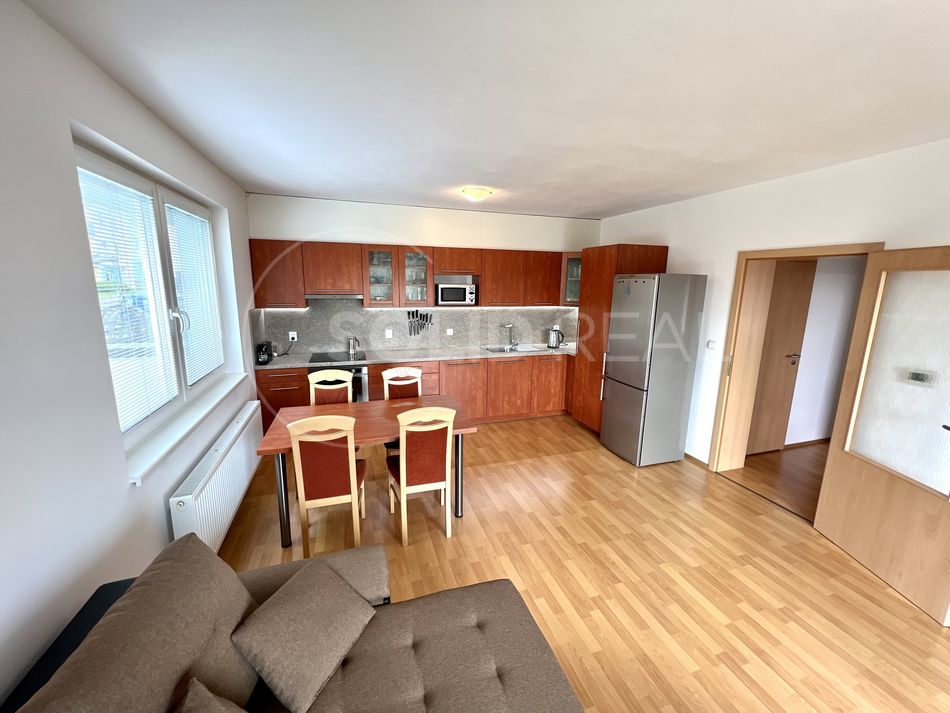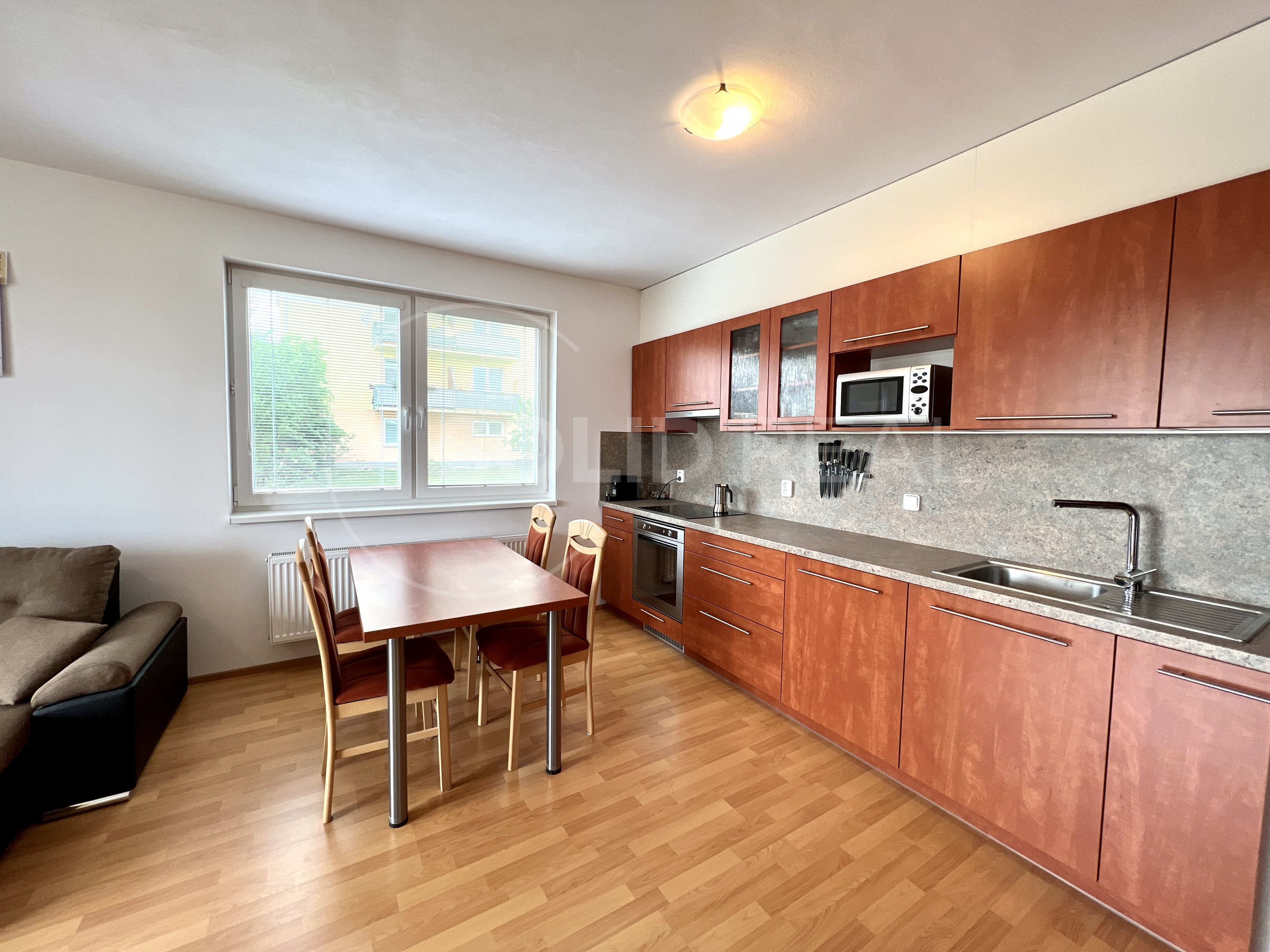 Nabízíme k pronájmu velmi pěkný a světlý byt typu 2+kk s terasou, který se nachází ve 1.NP/4 novostavby cihlového domu s výtahem. Byt je umístěn vysoko nad zemí, pod jednotkou jsou garáže. Celková plocha bytu činí 58m2 + 17m2 terasa, která je přes celou délku bytu. Byt i terasa jsou orientovány jižním směrem, byt je klimatizovaný, s výhledem do nového parku. V suterénu domu je v ceně zahrnuto 1 garážové stání. Přístup do bytu i do garáží je plně bezbariérový. Byt se nabízí s vybavením (spotřebiče, nábytek a další), vyjma postelí- možnost odvozu vybavení. Jádro je zděné, toaleta samostatně. K dispozici vlastní sklep a společná kočárkárna/kolárna v domě. V domě zavedena kabelová televize a internet. Volný ihned. Pouze nekuřáci.