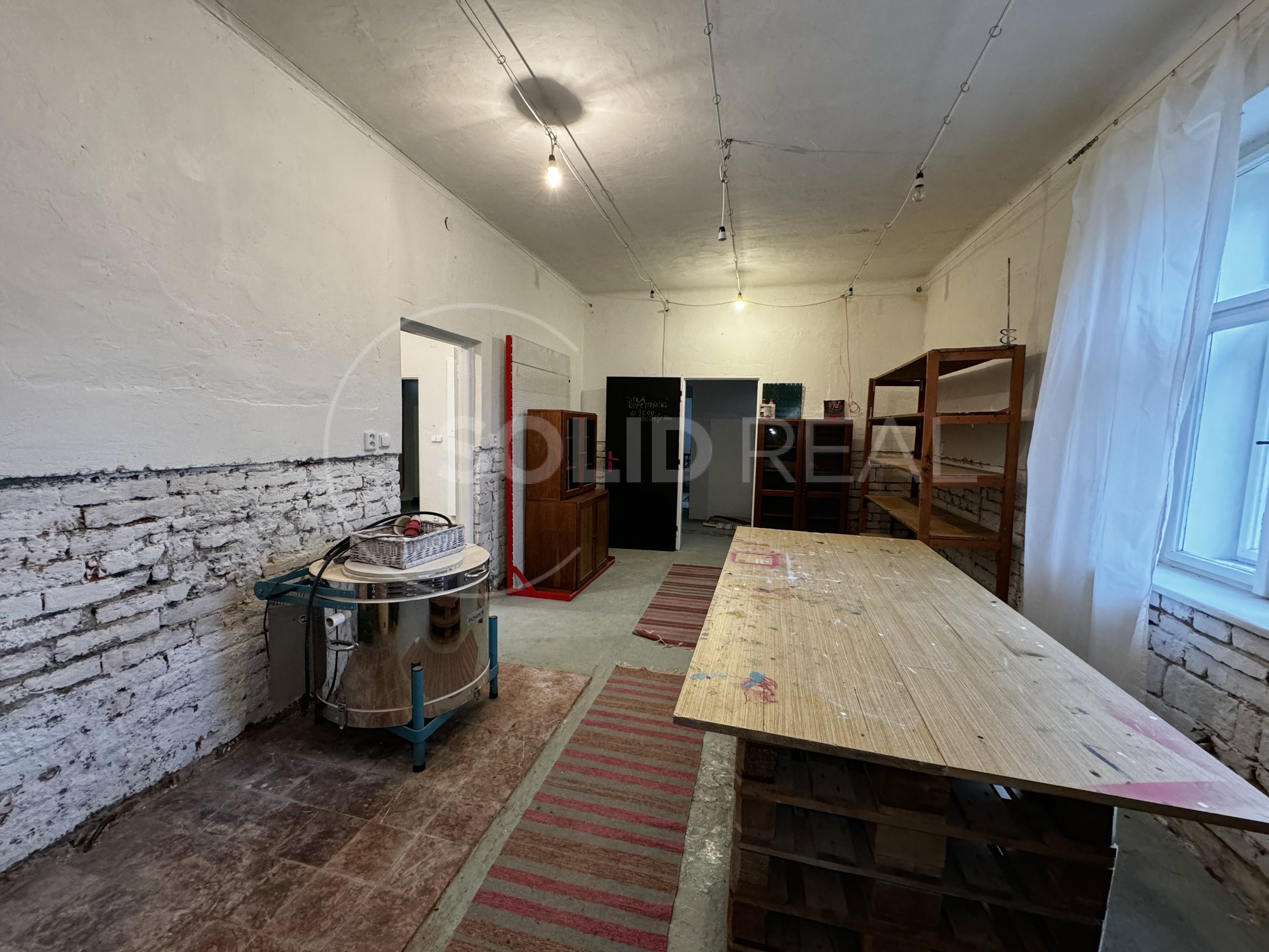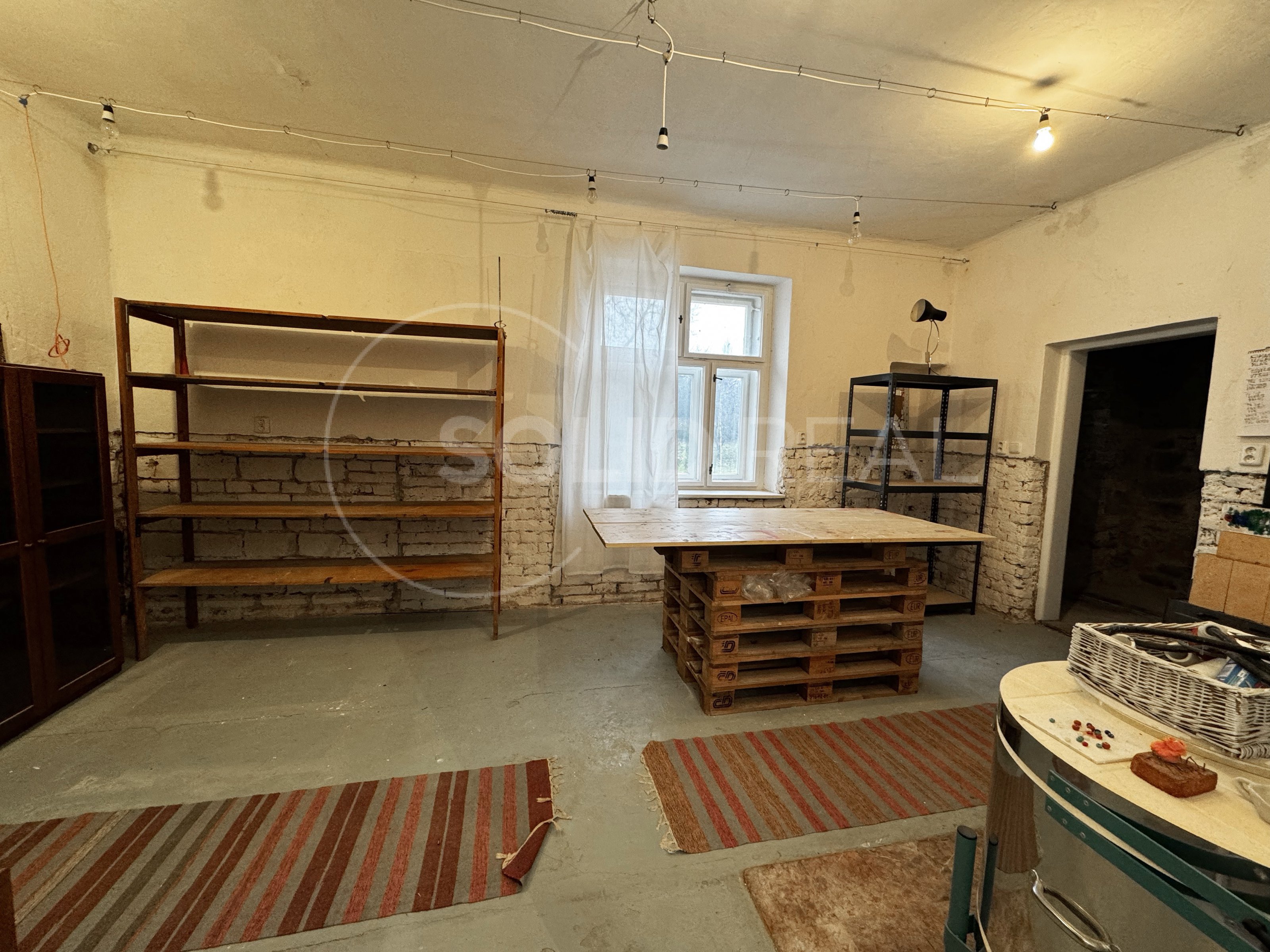 Nabízíme k pronájmu rodinný dům v Dolních Loučkách u Tišnova. Dům je z části tvořen bytovou jednotkou a nebytovými prostory, dále k nemovitosti přináleží předzahrádka a zahrada. Nebytový prostor se skládá z dílny - ateliéru 20 m², dílny 22 m² (na fotografii s keramickou pecí, jenž není součástí nájmu) a 2 skladů 12 + 8 m² o celkové výměře cca 92 m². Tyto nebytové prostory budou ke dni předání vyklizeny. Bytová jednotka: plocha bytu činí 32 m² , výměry: kuchyň 12 m² + pokoj 15 m² + koupelna 5 m². Byt je světlý a má osobitý styl. Podlahy jsou nové, okna vyměněna za plastová, kuchyňská linka s funkčním elektrickým sporákem a troubou. Vytápěno pomocí nových plynových WAW. Součástí pronájmu je dále předzahrádka o výměře 179 m². Volné ihned.